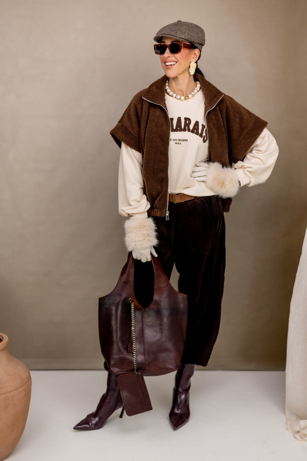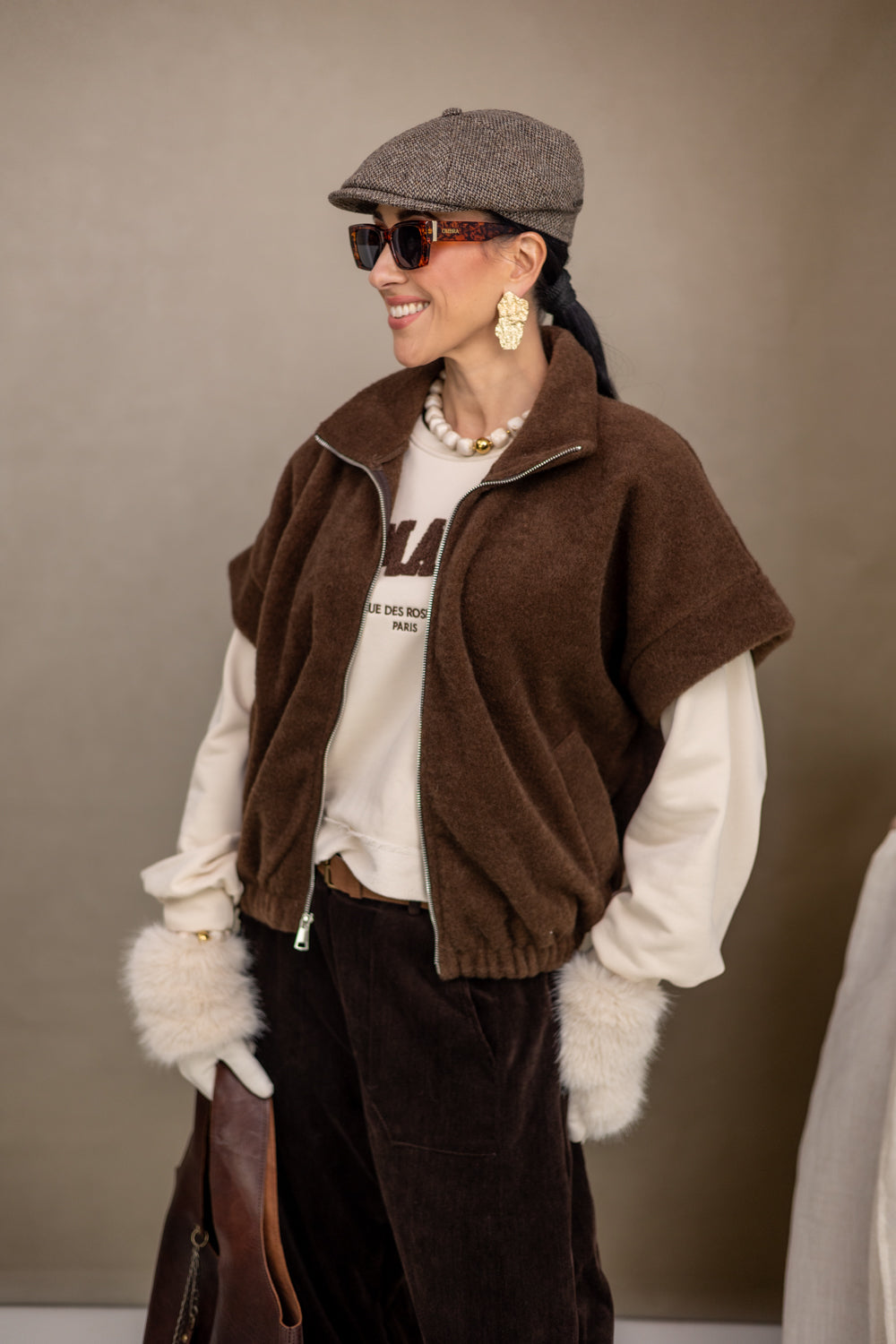 Breng een stijlvolle flair in je garderobe met de bruine bodywarmer Fanela, ideaal voor frisse dagen. Gemaakt van 100% polyester, biedt deze bodywarmer ultiem comfort met een perfecte pasvorm voor maten S t/m XL dankzij het ‘one size fits all’ ontwerp. Of je hem nu casual draagt met een T-shirt of elegant combineert met een blouse, deze veelzijdige bodywarmer is een must-have.