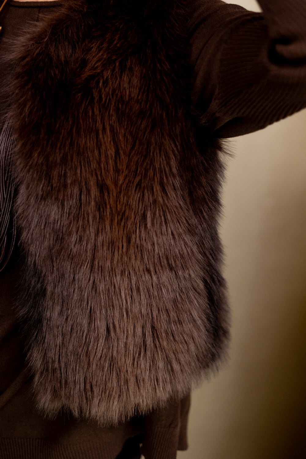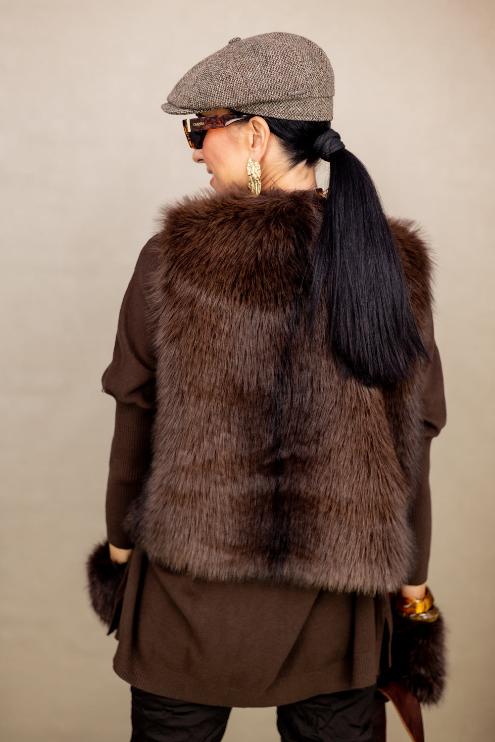 Heerlijk bruin bontgilet , 100% polyester, one size maat 36 t/m 42