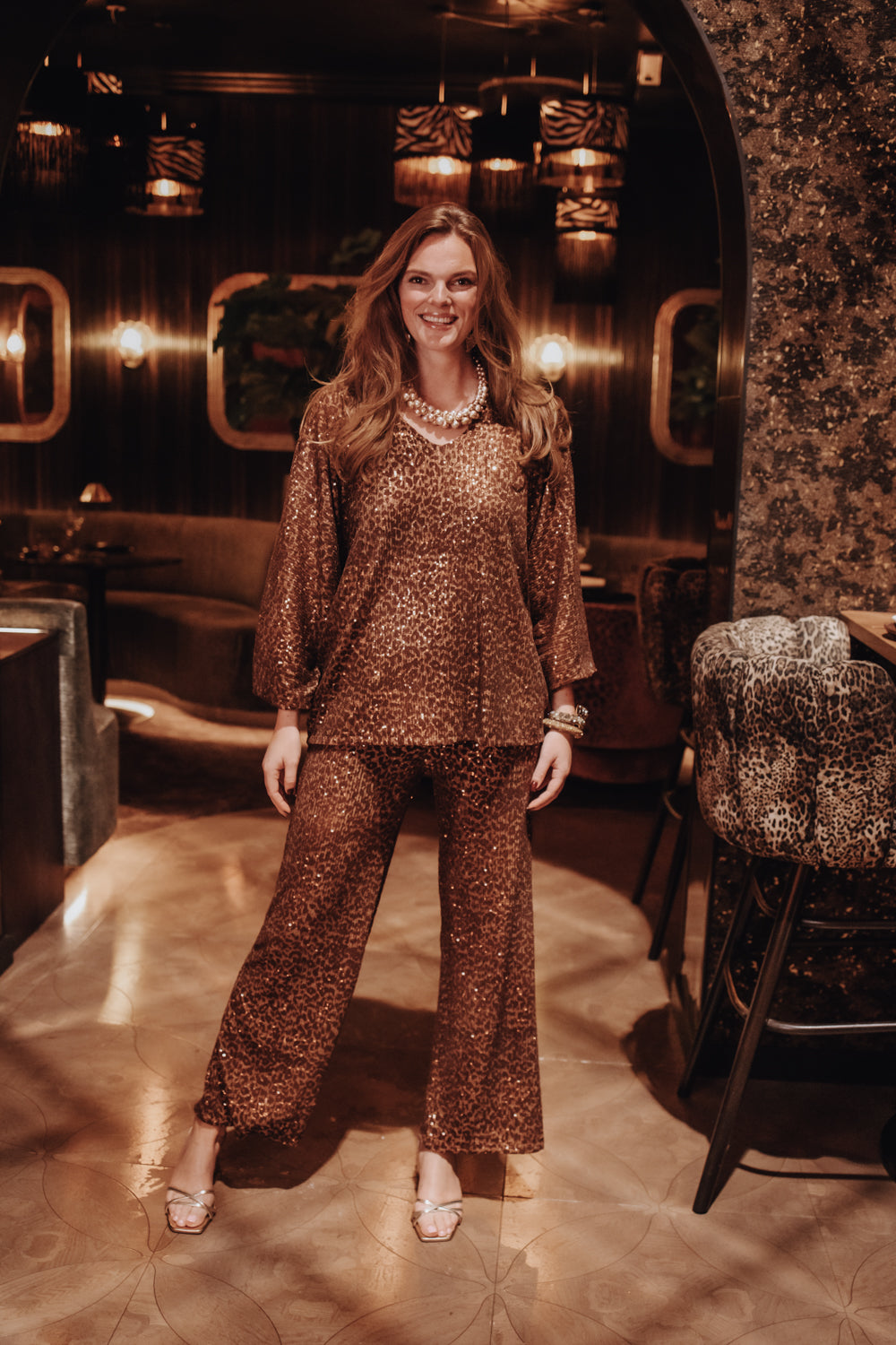 De sprankelende pailletten zorgen ervoor dat je opvalt, en in combinatie met de bijpassende top Livana creëer je een prachtige outfit die je zelfvertrouwen een boost geeft. Ideaal voor zowel een avondje uit als speciale gelegenheden, deze broek past bij seizoensgebonden stijlen.