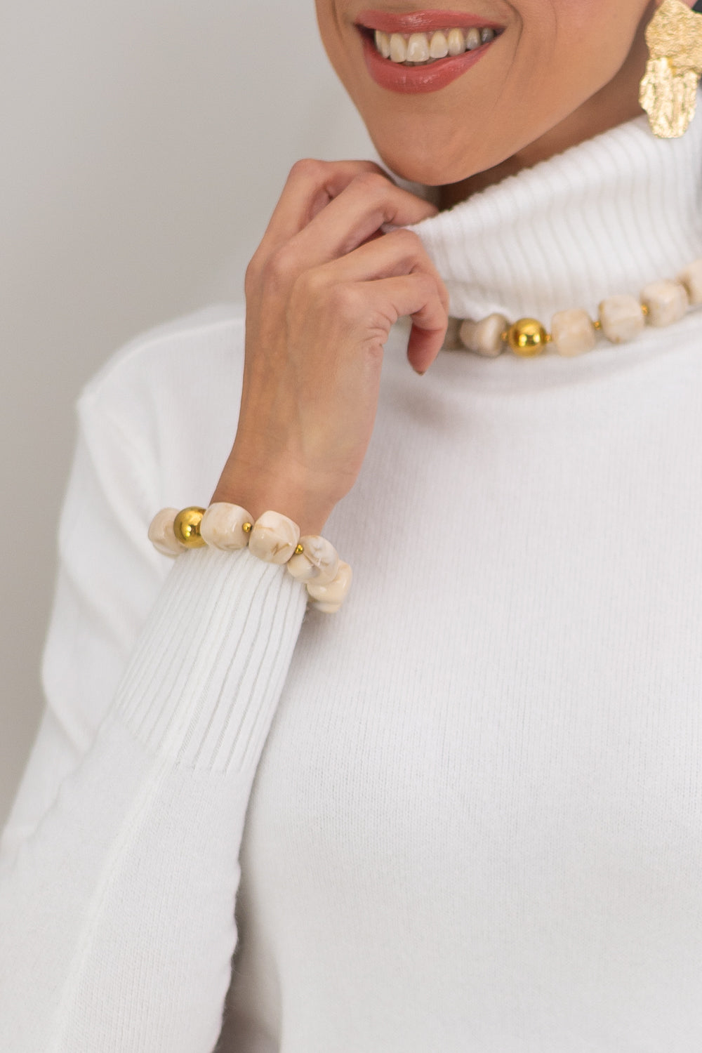 Torino is het perfecte basis witte coltruitje voor in je kledingkast en is gemaakt van 50% viscose, 28% polyamide en 22% nylon.