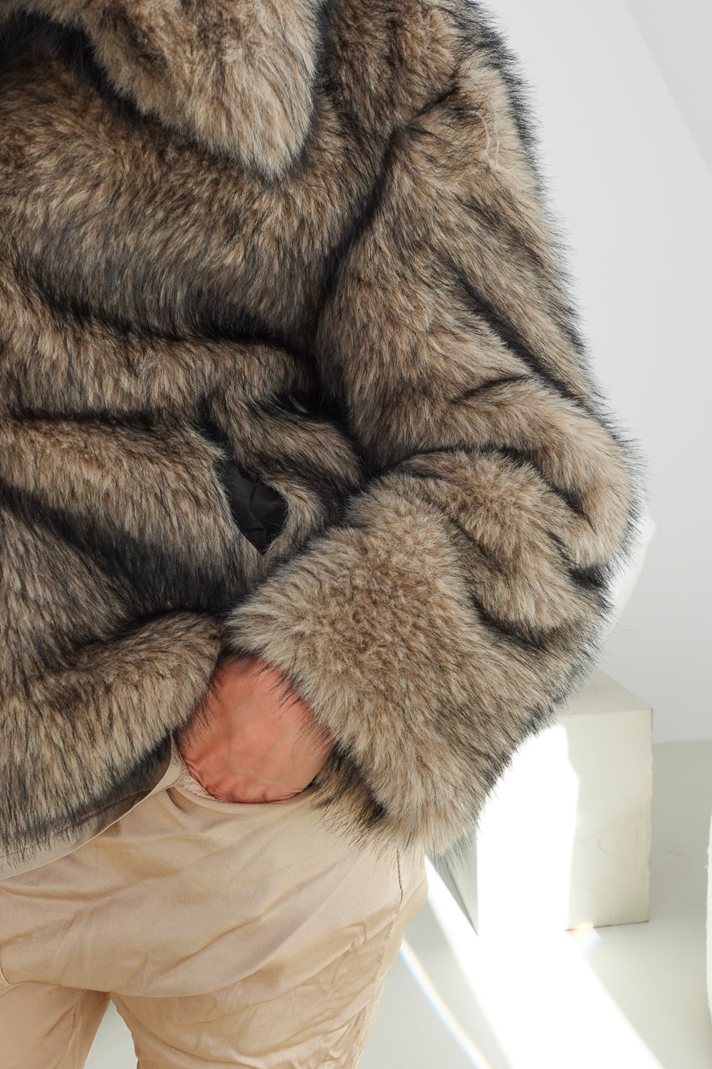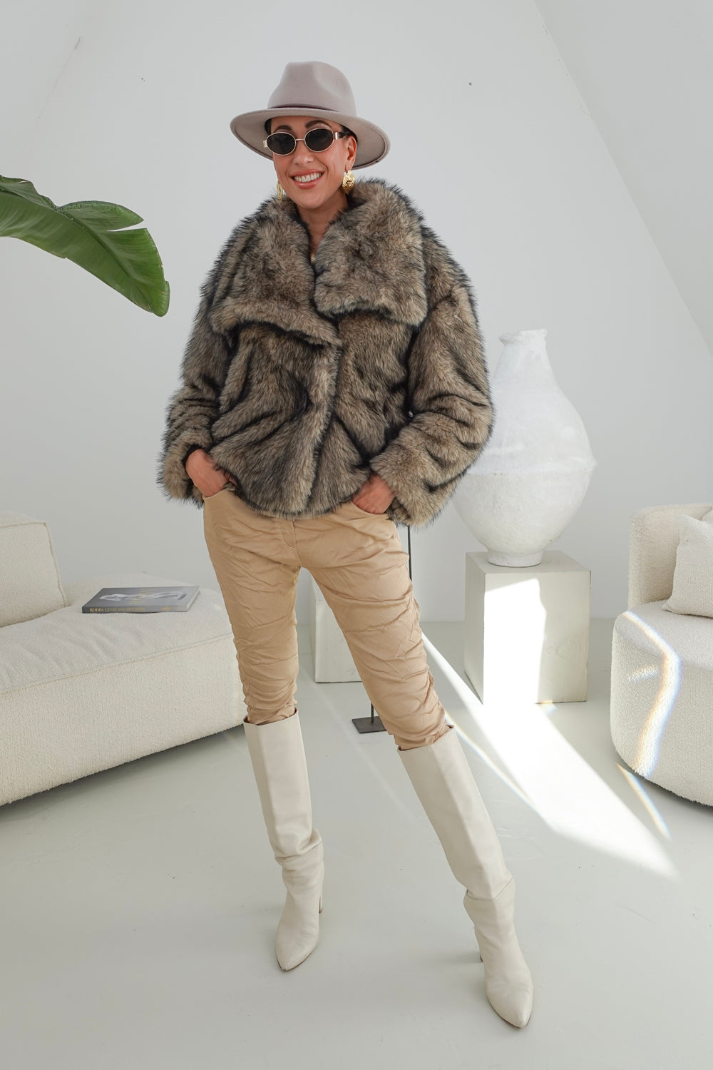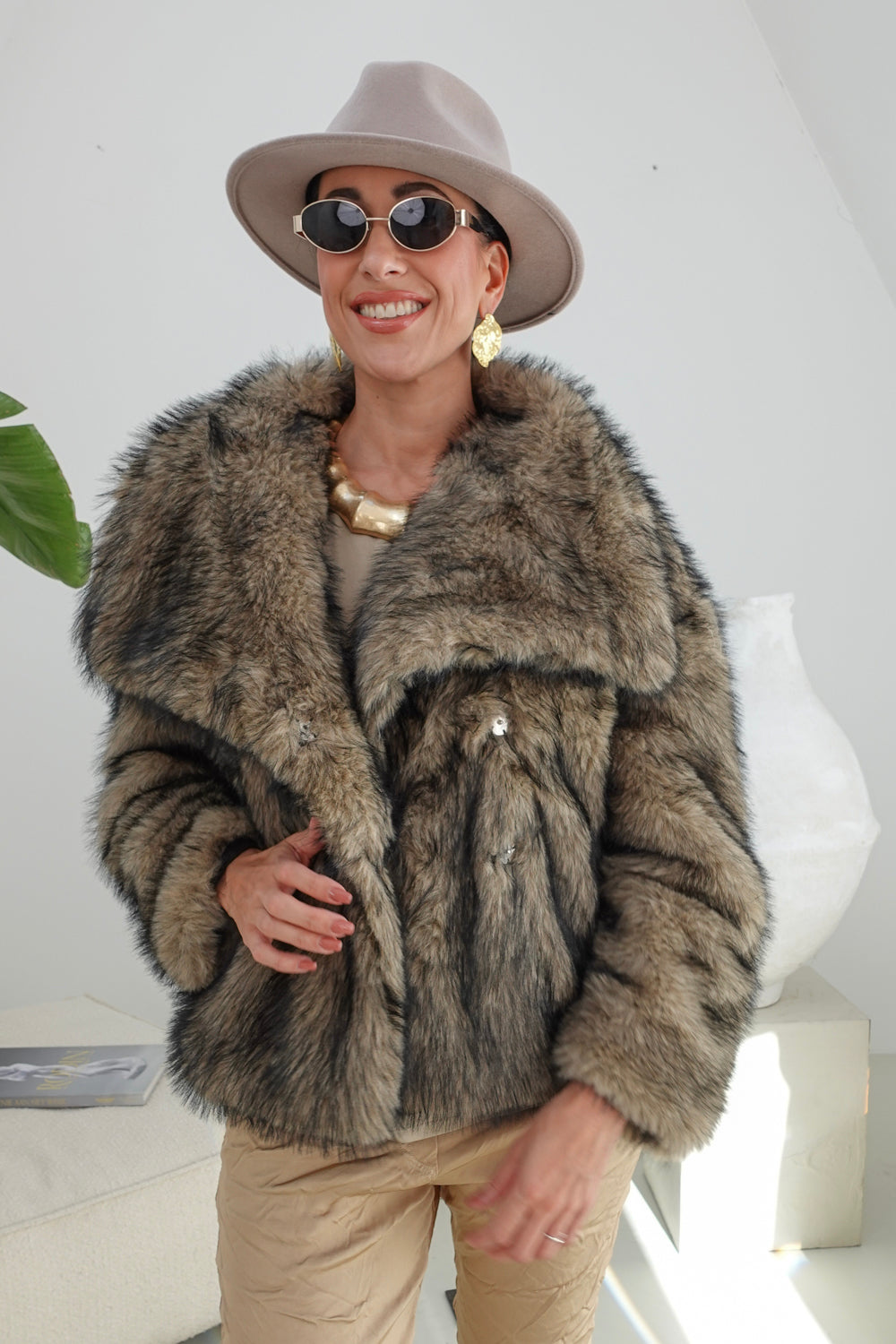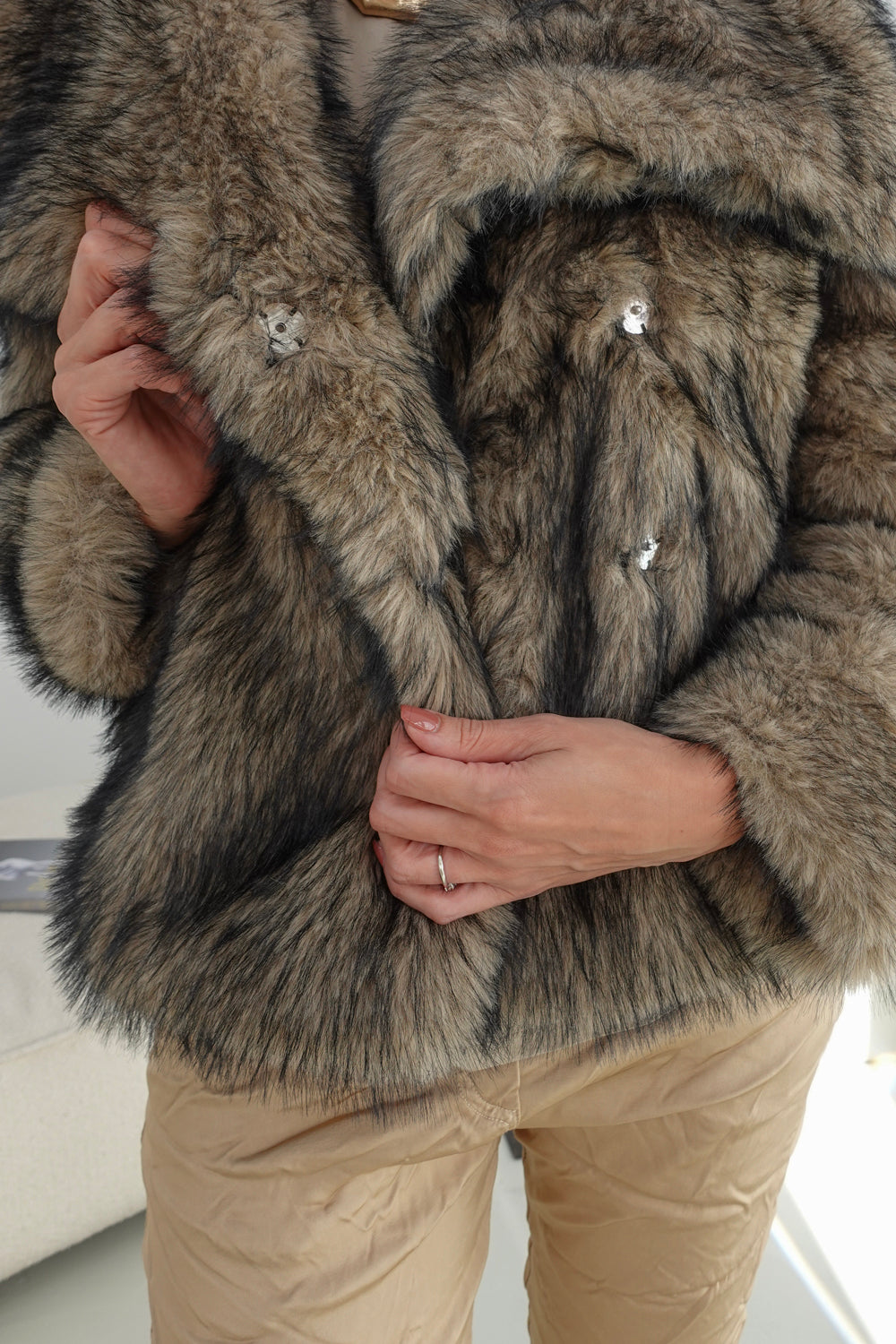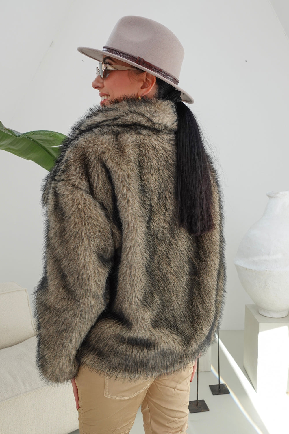 Deze stijlvolle gemeleerde bontjas is een must-have voor elke gelegenheid, van een frisse dag in de stad tot een avondje uit. Gemaakt van 100% polyester, biedt het een geweldige pasvorm voor maten S tot XL en voelt het heerlijk zacht aan.