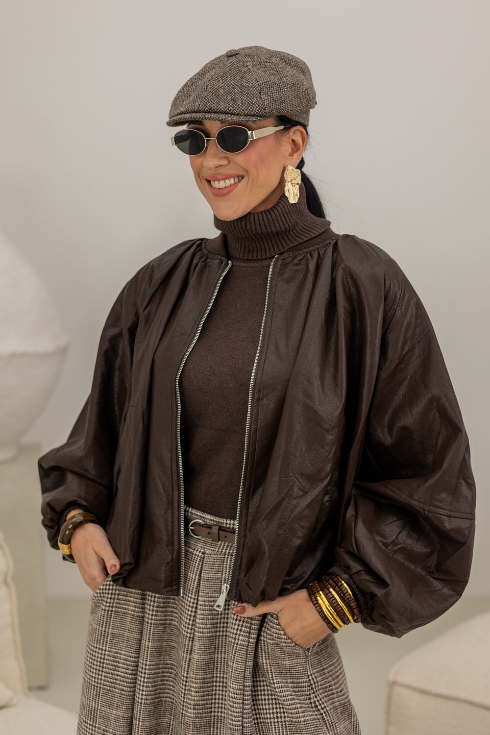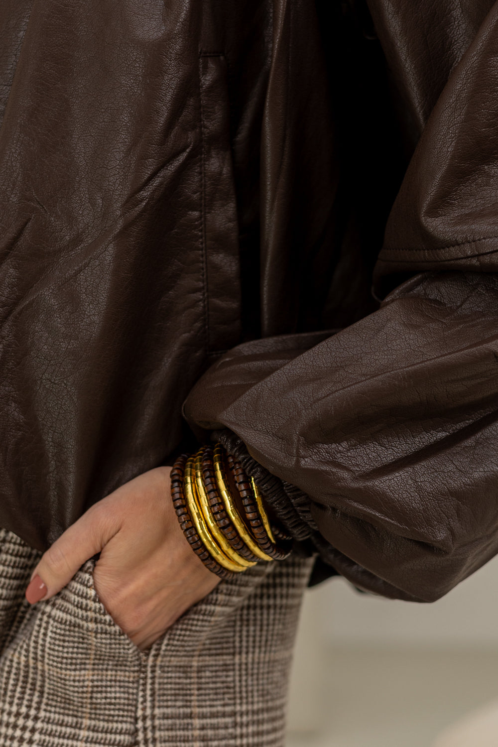 Stoer bruine leather look jasje, 100% polyester, one size maat 36 t/m 42