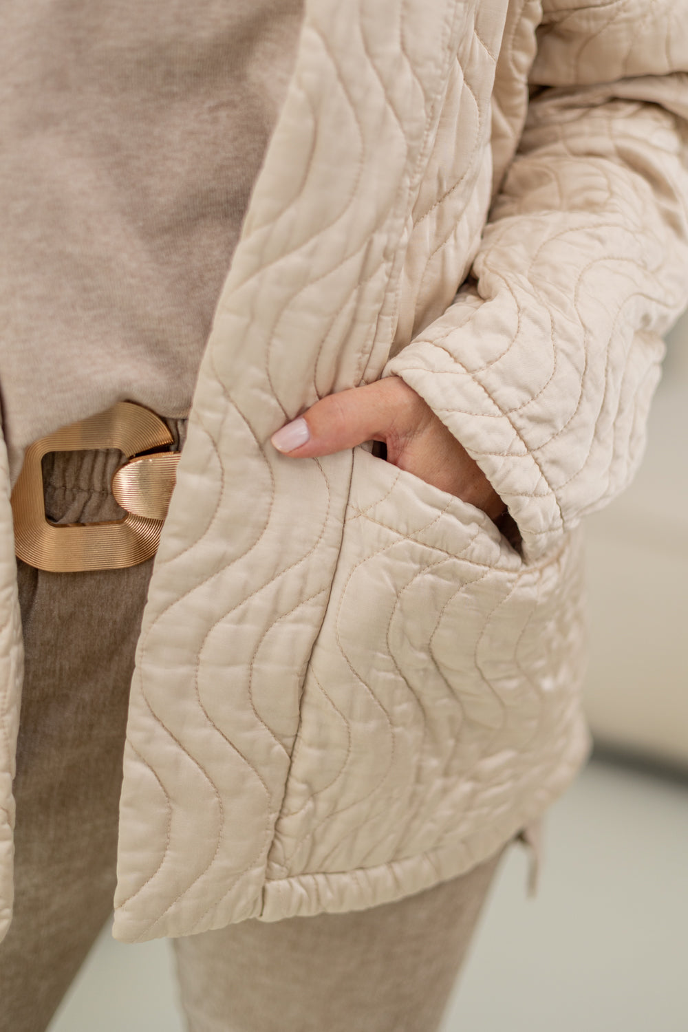 Breng een vleugje elegantie in je outfit met ons beige, ruimvallende jasje Zola. Gemaakt van een luxueuze mix van 80% viscose en 20% zijde, biedt dit jasje een comfortabele pasvorm en een verfijnde uitstraling. Met zijn 'one size fits all'-concept is het perfect voor maten 36 t/m 44, waardoor het ideaal is voor elke lichaamsvorm.