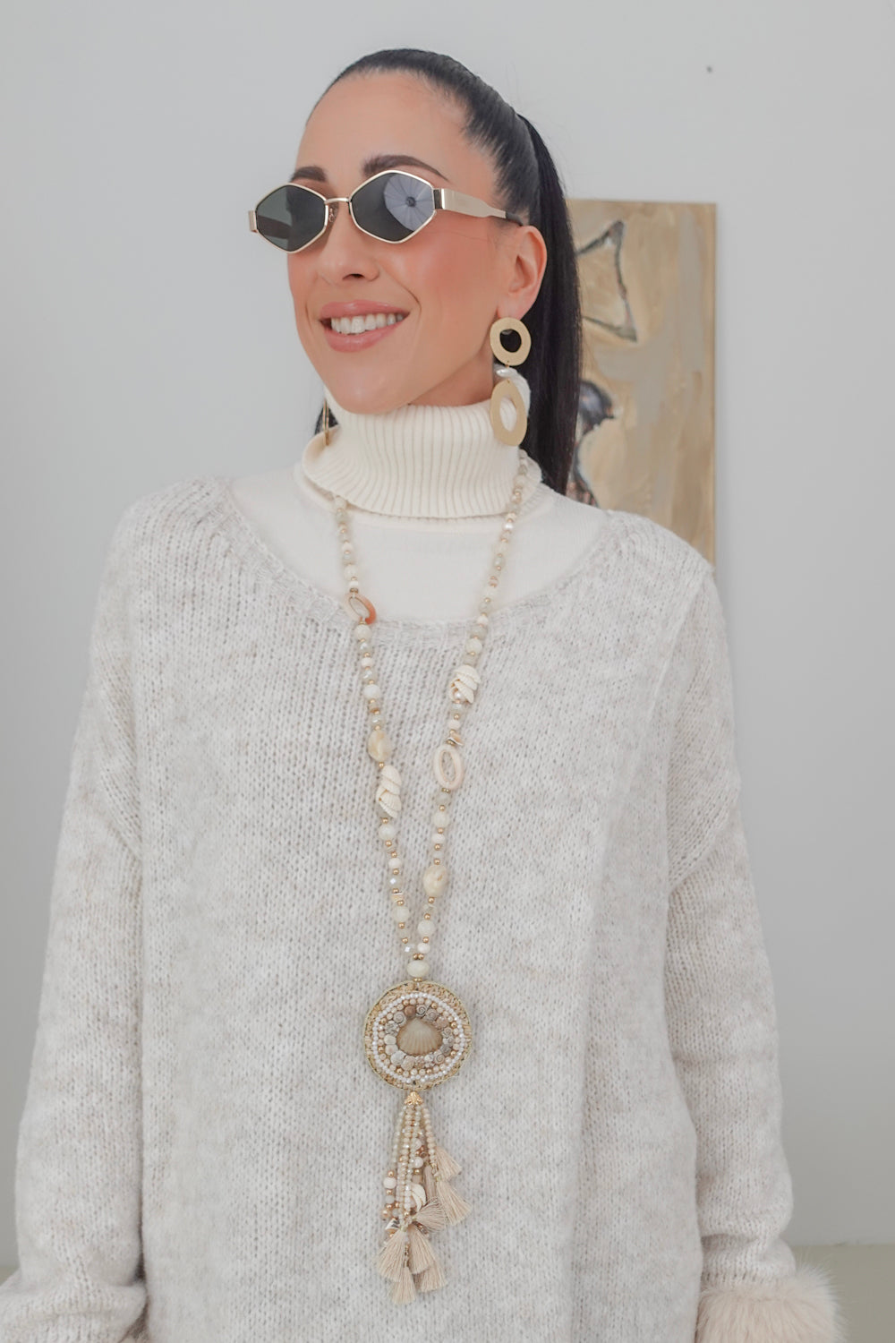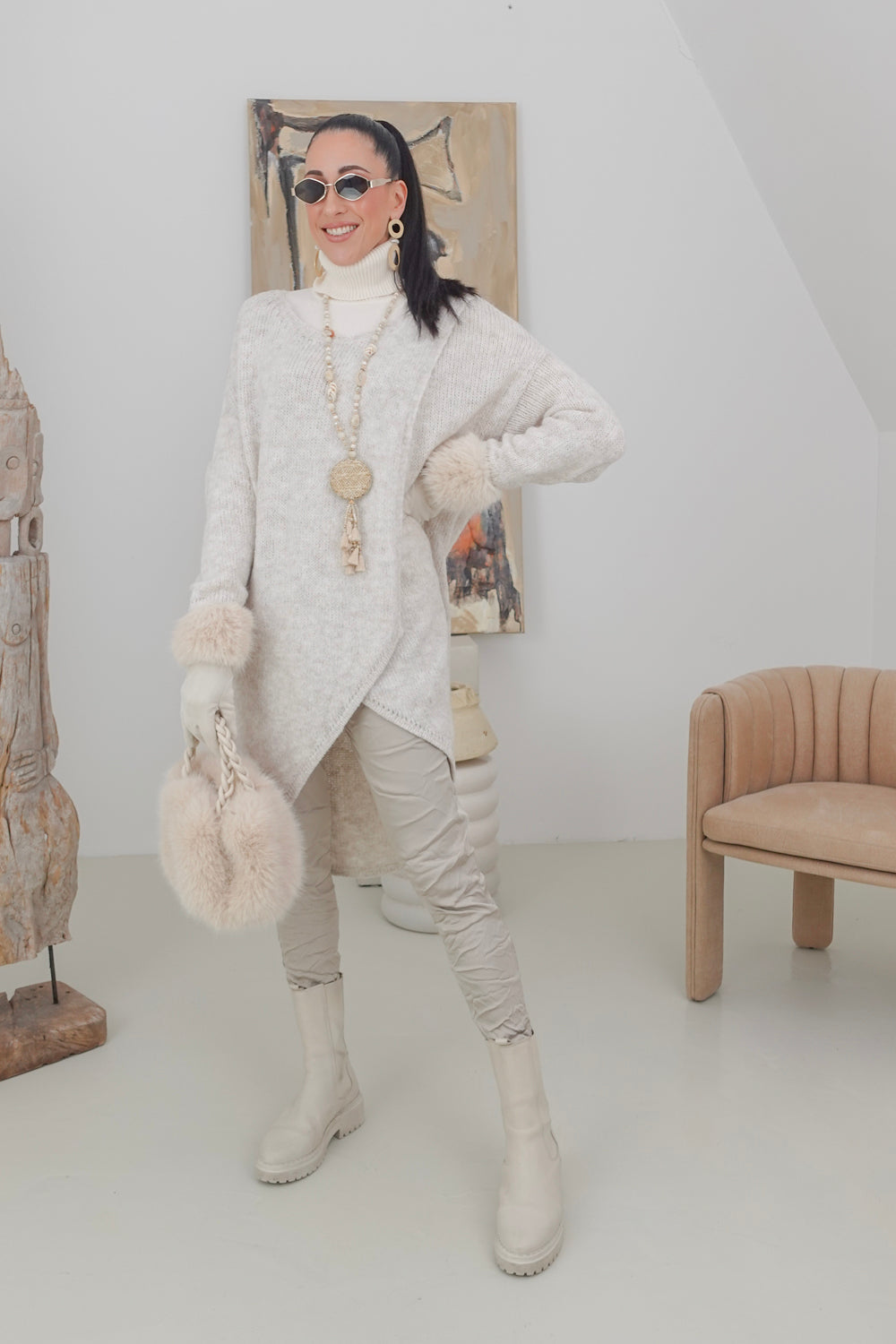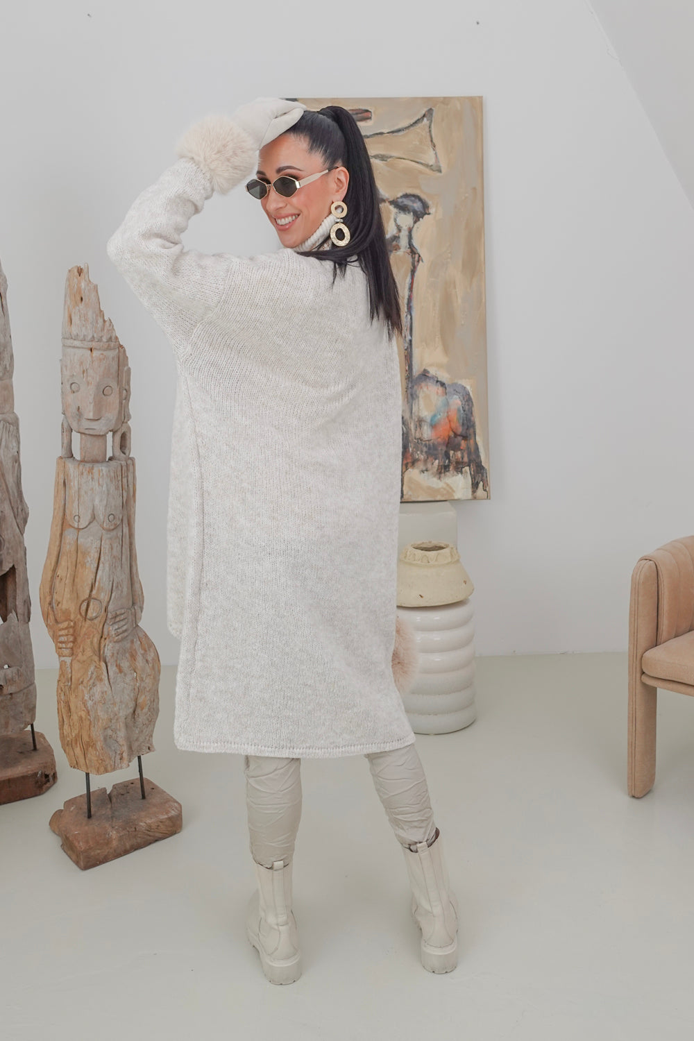 Gemaakt van een luxe mix van 52% acryl, 22% polyester, 18% lana en 8% viscose, voelt het materiaal heerlijk zacht aan. Dit veelzijdige ontwerp kan eenvoudig worden gestyled met je favoriete accessoires voor een eigentijdse uitstraling.