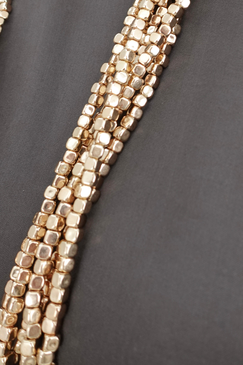 Maak kennis met de betoverende ketting Omol, een perfect accessoire voor zowel chique avondjes uit als casual gelegenheden. Deze gouden gebundelde ketting in glanzende goudlook is gemaakt van luxe materialen, wat je look een bijzondere flair geeft. Het veelzijdige ontwerp zorgt ervoor dat het moeiteloos te combineren is met diverse outfits en elk ensemble compleet maakt.