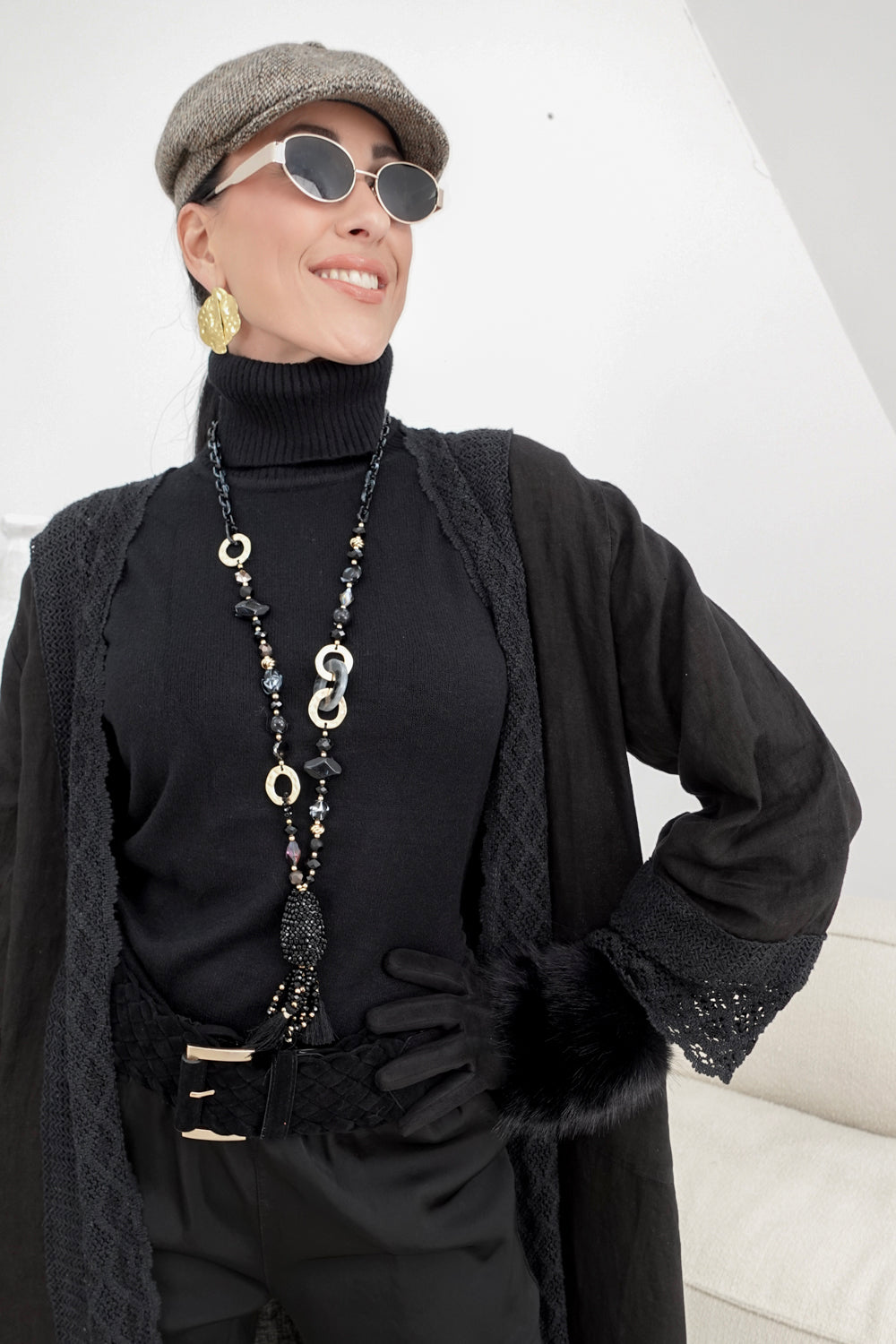 Deze elegante zwarte ketting met een speelse bol is perfect voor elke gelegenheid, van casual uitjes tot chique evenementen. Met zijn unieke design en one size, perfect fit concept, past deze ketting comfortabel voor iedereen van maat S t/m XL. Gemaakt van diverse hoogwaardige materialen, biedt hij niet alleen een luxe uitstraling, maar ook een fijn draagcomfort. De ketting voegt een verfijnde touch toe aan jouw outfit en laat je stralen.
