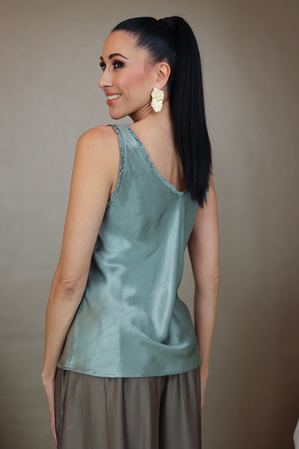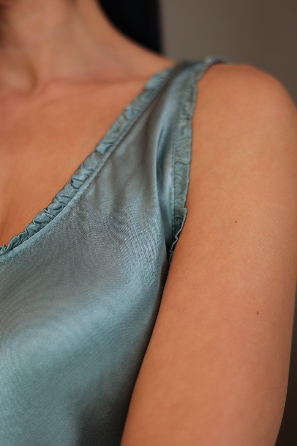 Brittany is het perfecte groene topje voor onder je opengewerkte trui, het colbertje of onder je vestje. Brittany is de XL versie van top Sherri.