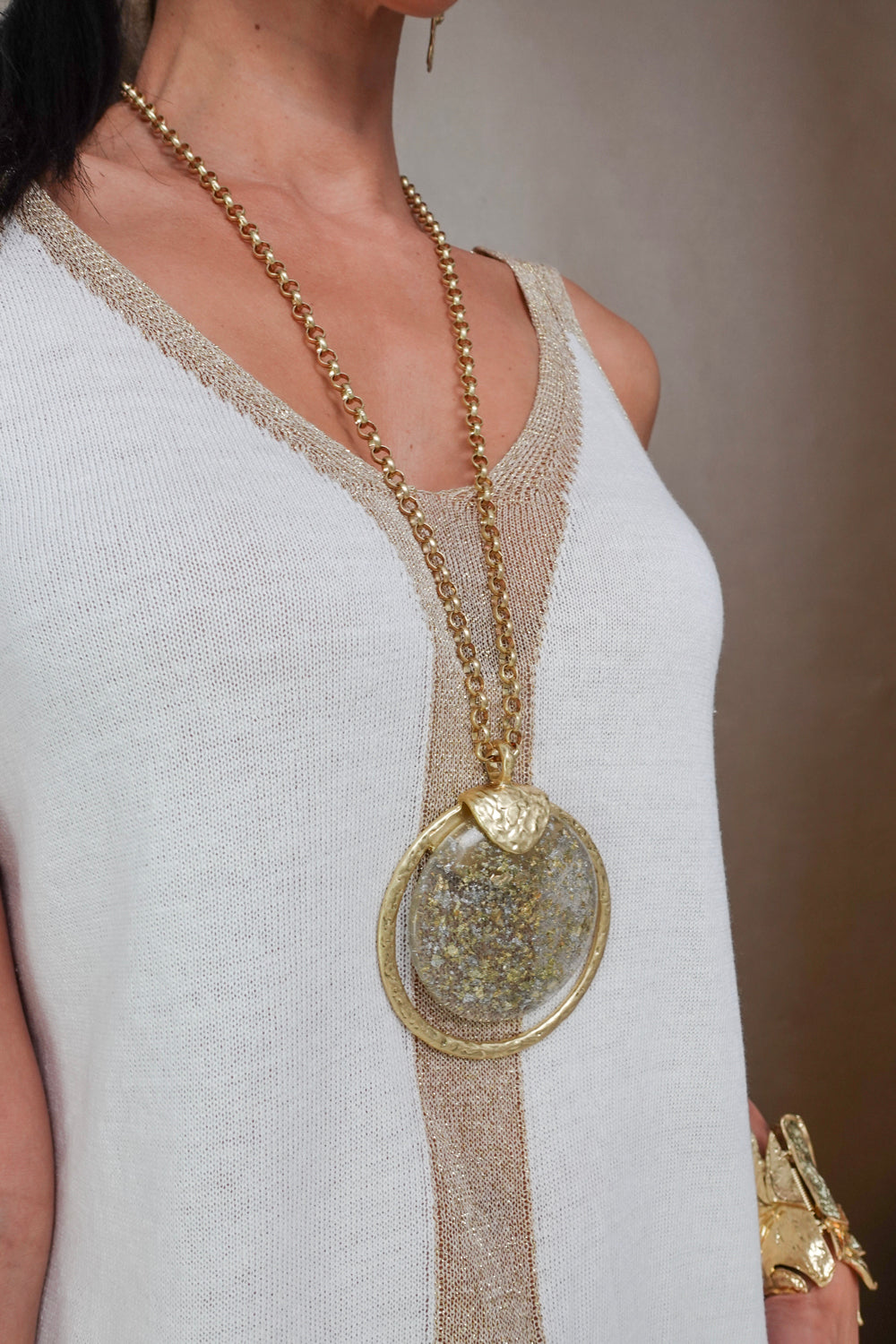 Kristine is een chique mouwloze top gemaakt van 50 % katoen en 50% acryl en is beige en goud van kleur.