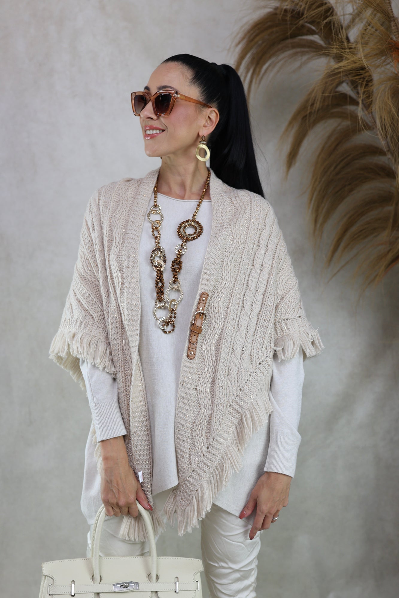 Maya is een stoere omslagdoek en met een gouddraadje. Heerlijk voor het koudere weer voor over je schouders. Maya is gemaak van 80% acryl en 20% lana.