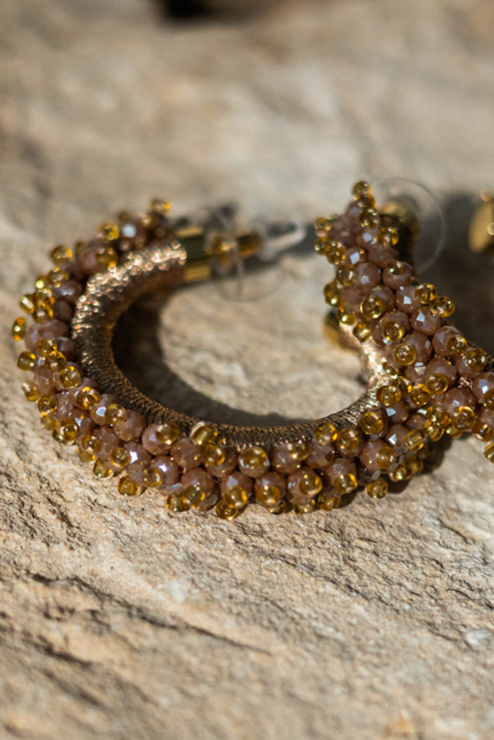 Deze ringvormige steekoorbel met glinsterende steentjes is een elegante toevoeging aan je look.