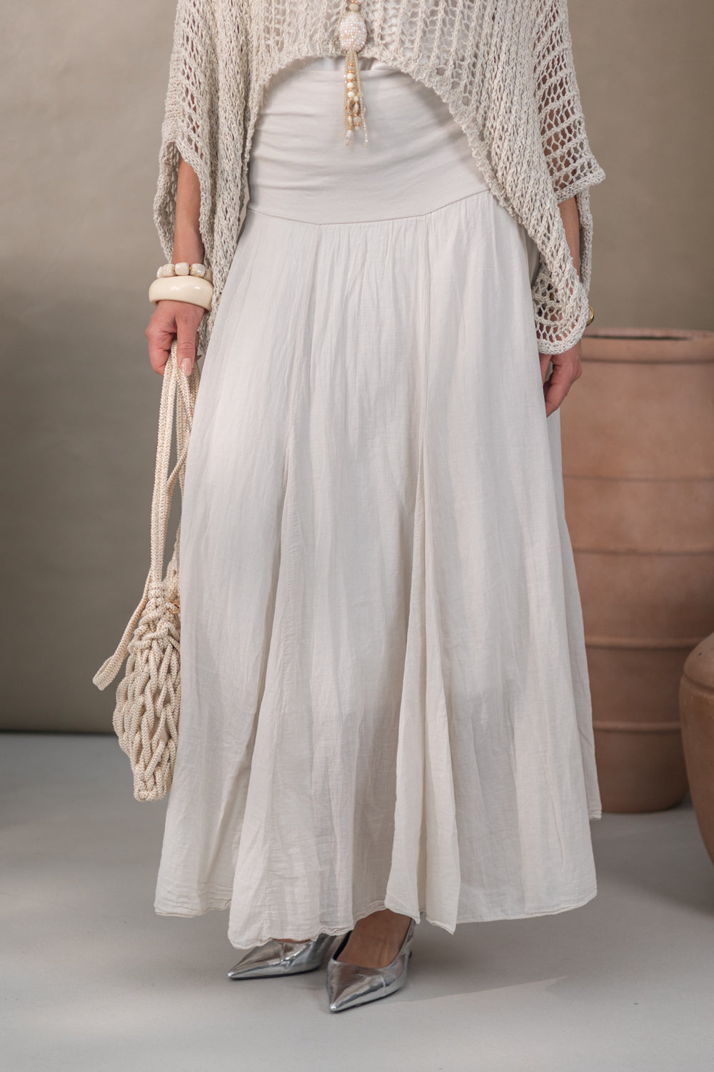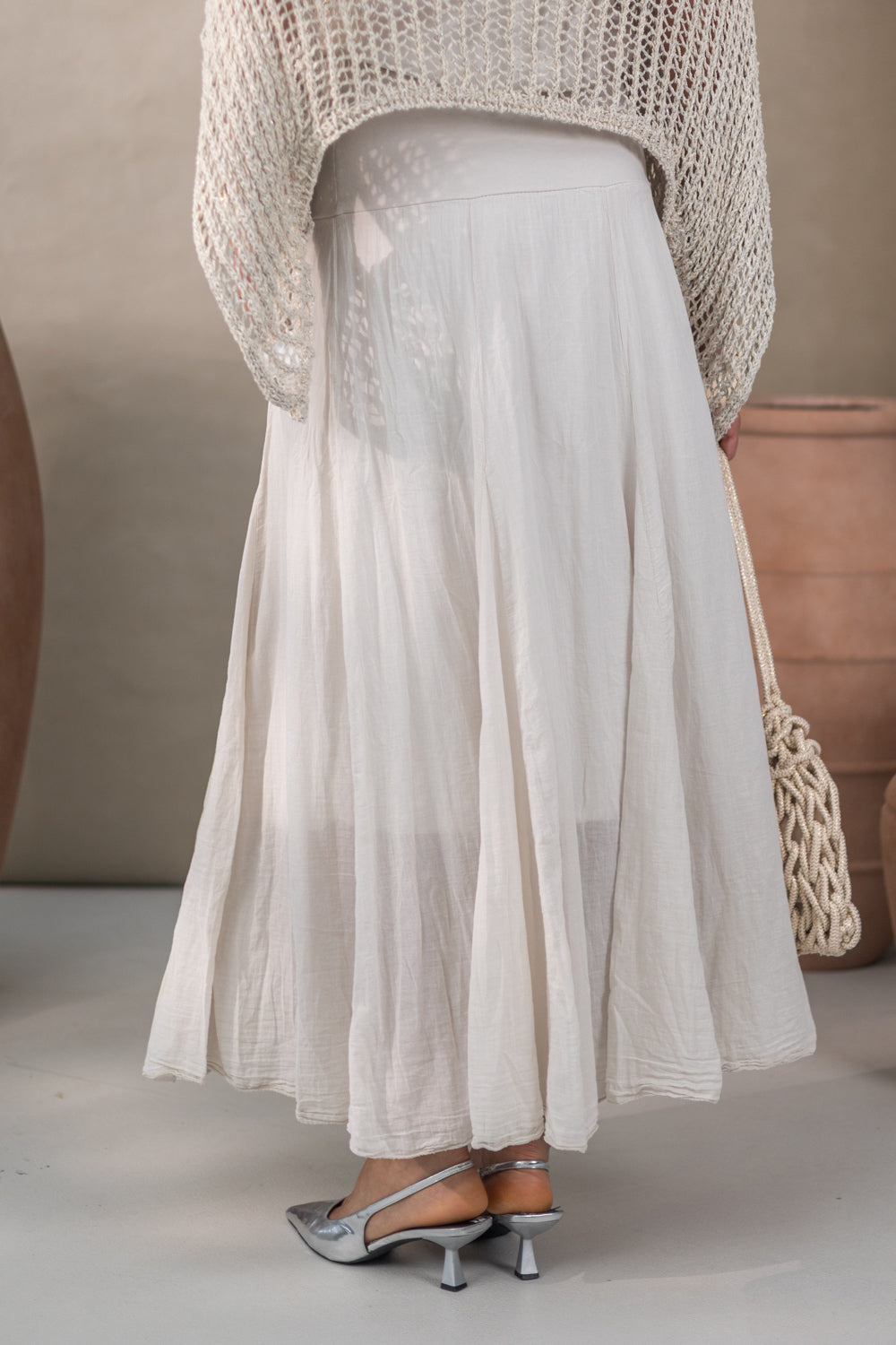 Stel je voor: een zonnige dag, een lichte bries en jij die straalt in deze prachtige rok. Deze veelzijdige schoonheid kan moeiteloos worden gestyled voor elke gelegenheid. Of je nu een dagje uit gaat met vriendinnen, een romantische date hebt of gewoon wat wilt rondhangen, de Cersa rok is er om jou te laten schitteren.