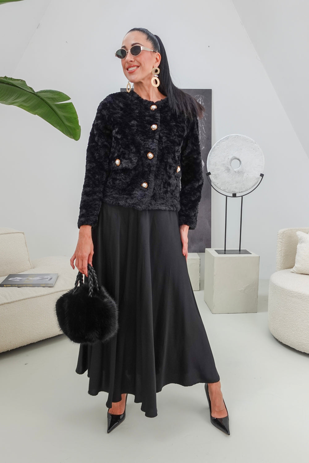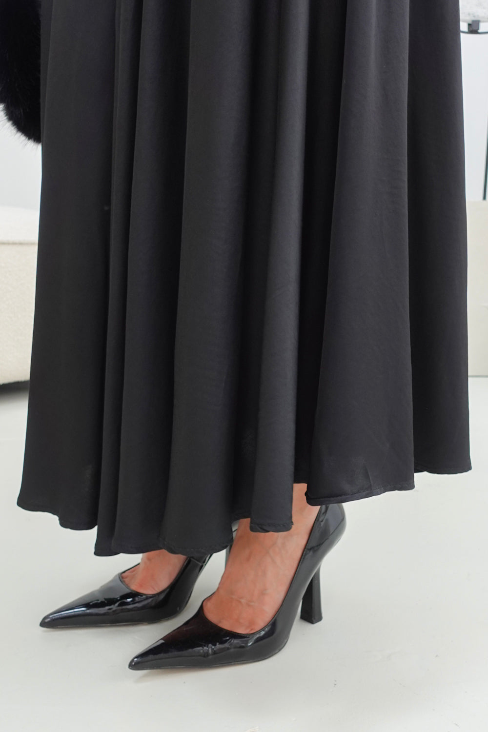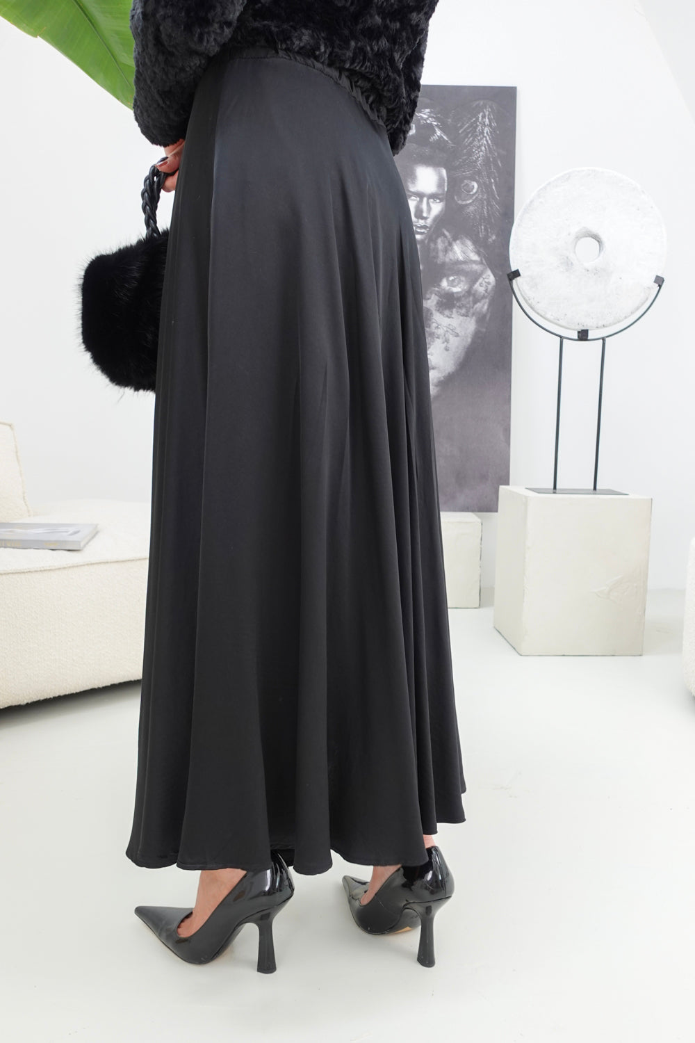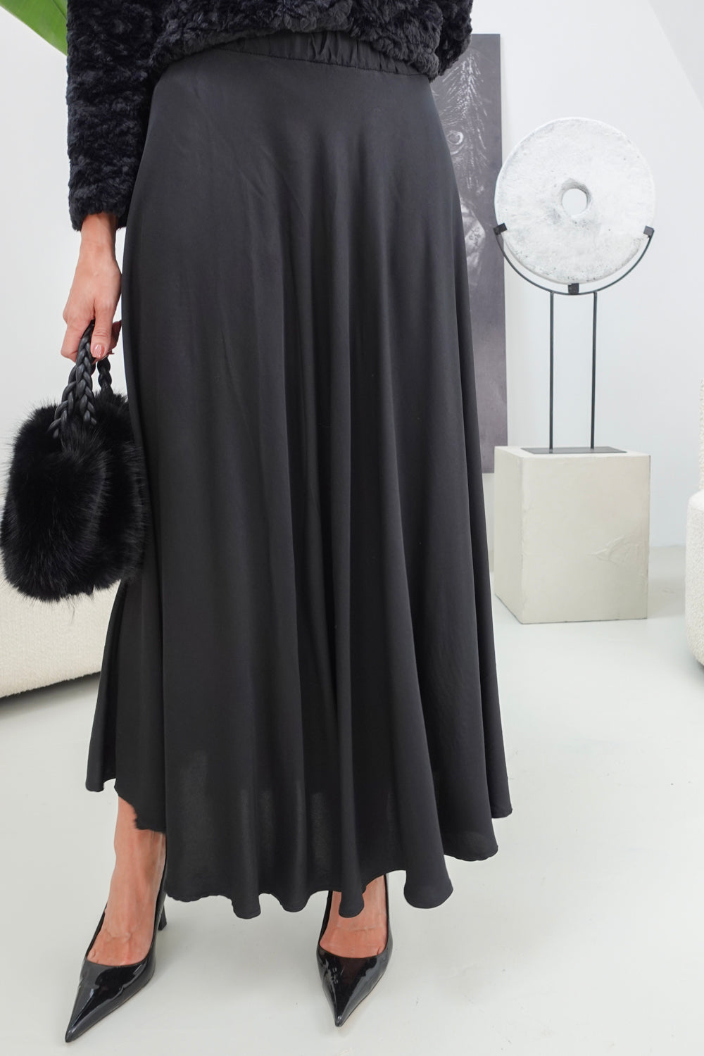 Maak een statement met deze stijlvolle zwarte lange rok, perfect voor elke gelegenheid. Gemaakt van 100% viscose biedt deze rok een ademende en comfortabele pasvorm die heerlijk aanvoelt.