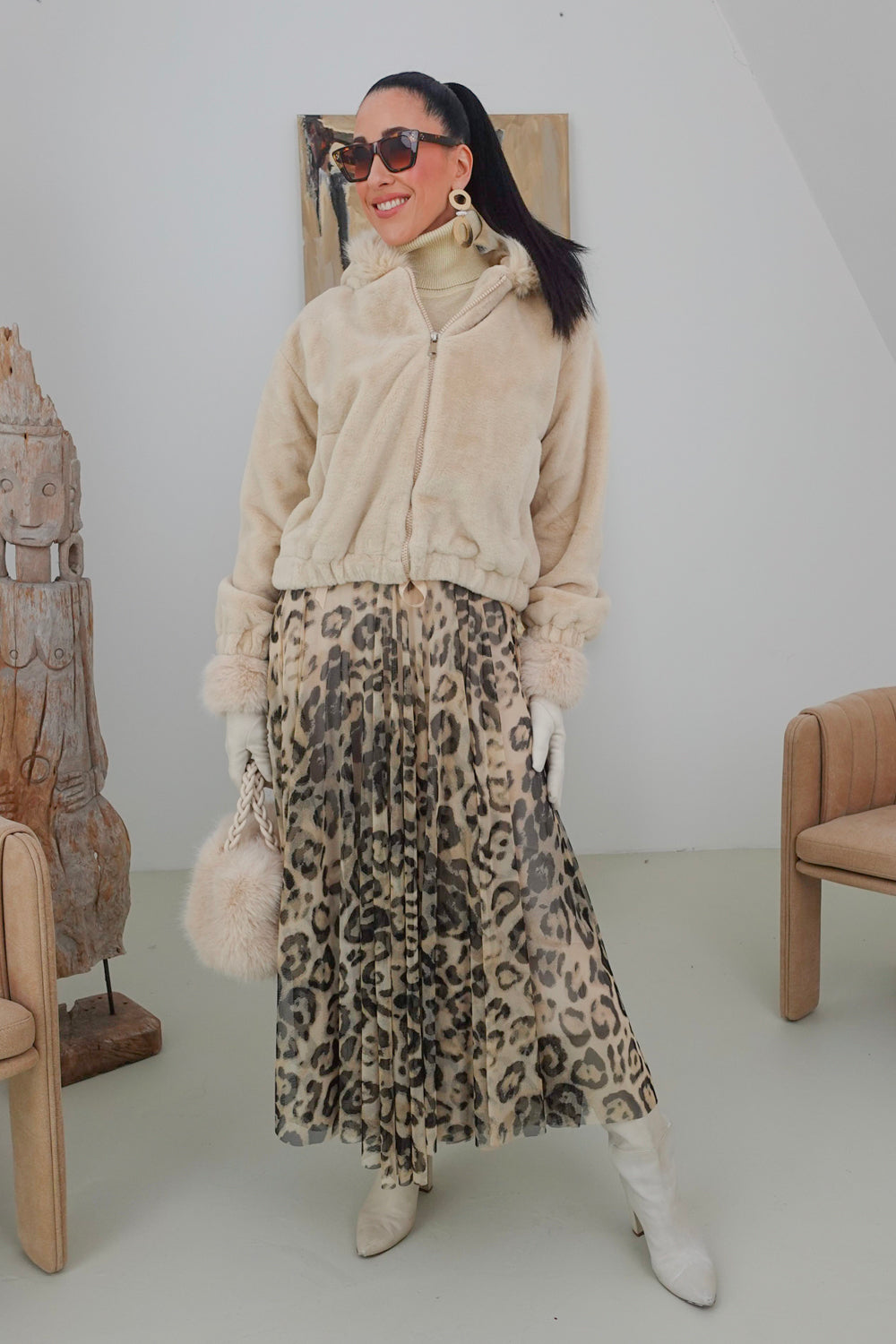Maak een gedurfde statement met onze prachtige rok Lonara! Deze trendy rok in panterprint heeft een semi-transparante bovenlaag en een ecru kleurige onderrok, waardoor hij perfect is voor elke gelegenheid. Gemaakt van 95% viscose en 5% elastan, biedt het niet alleen een geweldige pasvorm maar ook ultiem comfort. De one size, perfect fit, omsluit moeiteloos maten 36 t/m 42 en valt soepel over je figuur.