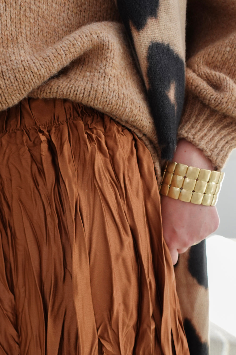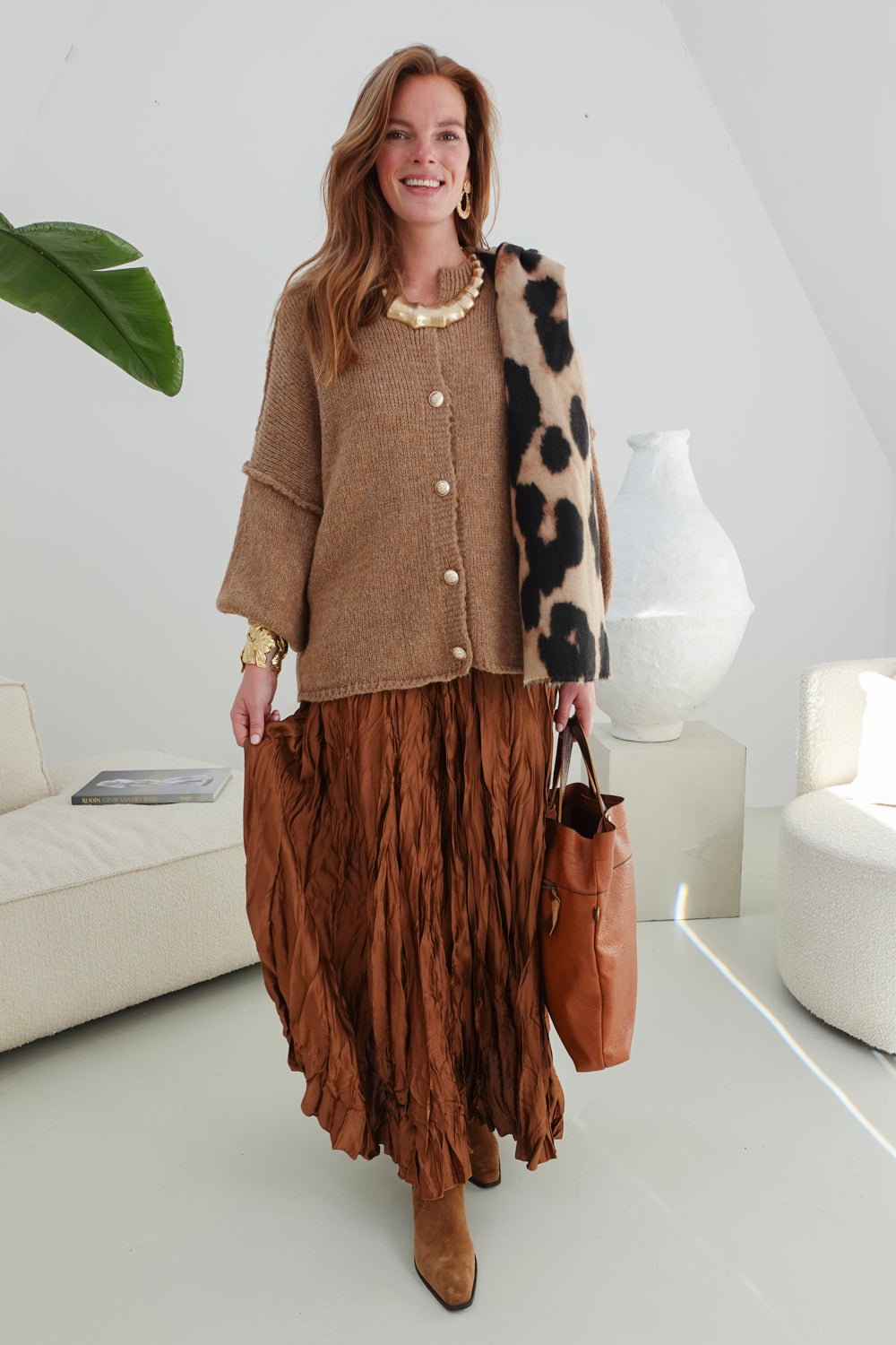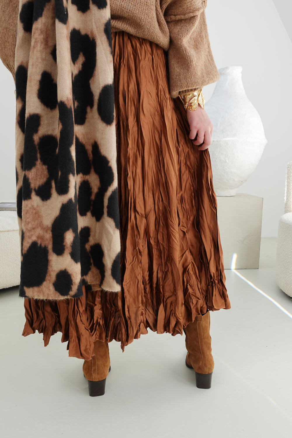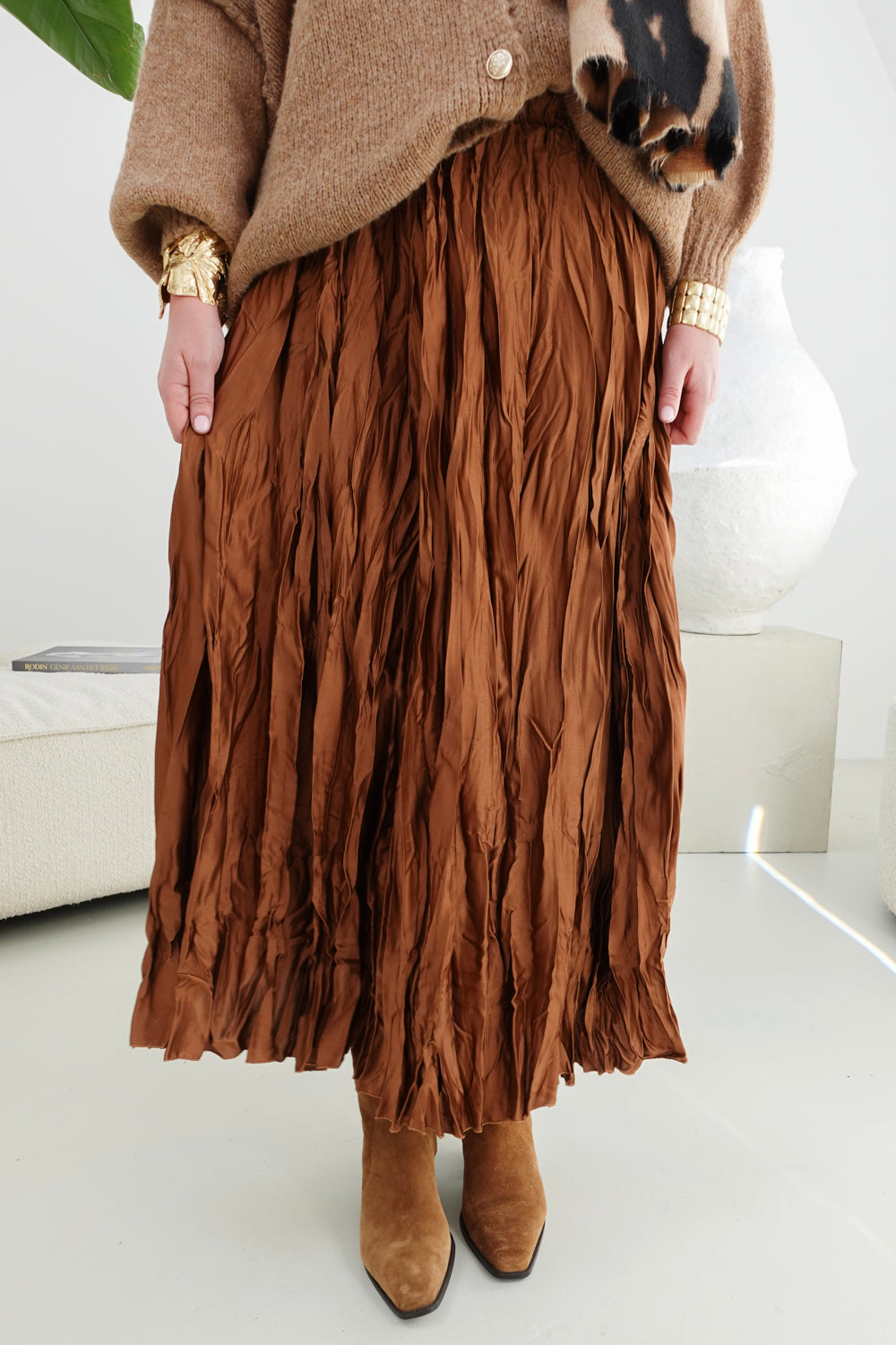 Draag een statement met de roestbruine krinkelrok Viyalia, ideaal voor elke gelegenheid. Deze rok in 'one size fits all' maat past comfortabel voor maten 36 t/m 44. Gemaakt van 100% polyester, zorgt het voor een lichte en luchtige feel, perfect voor de herfst en winter.
