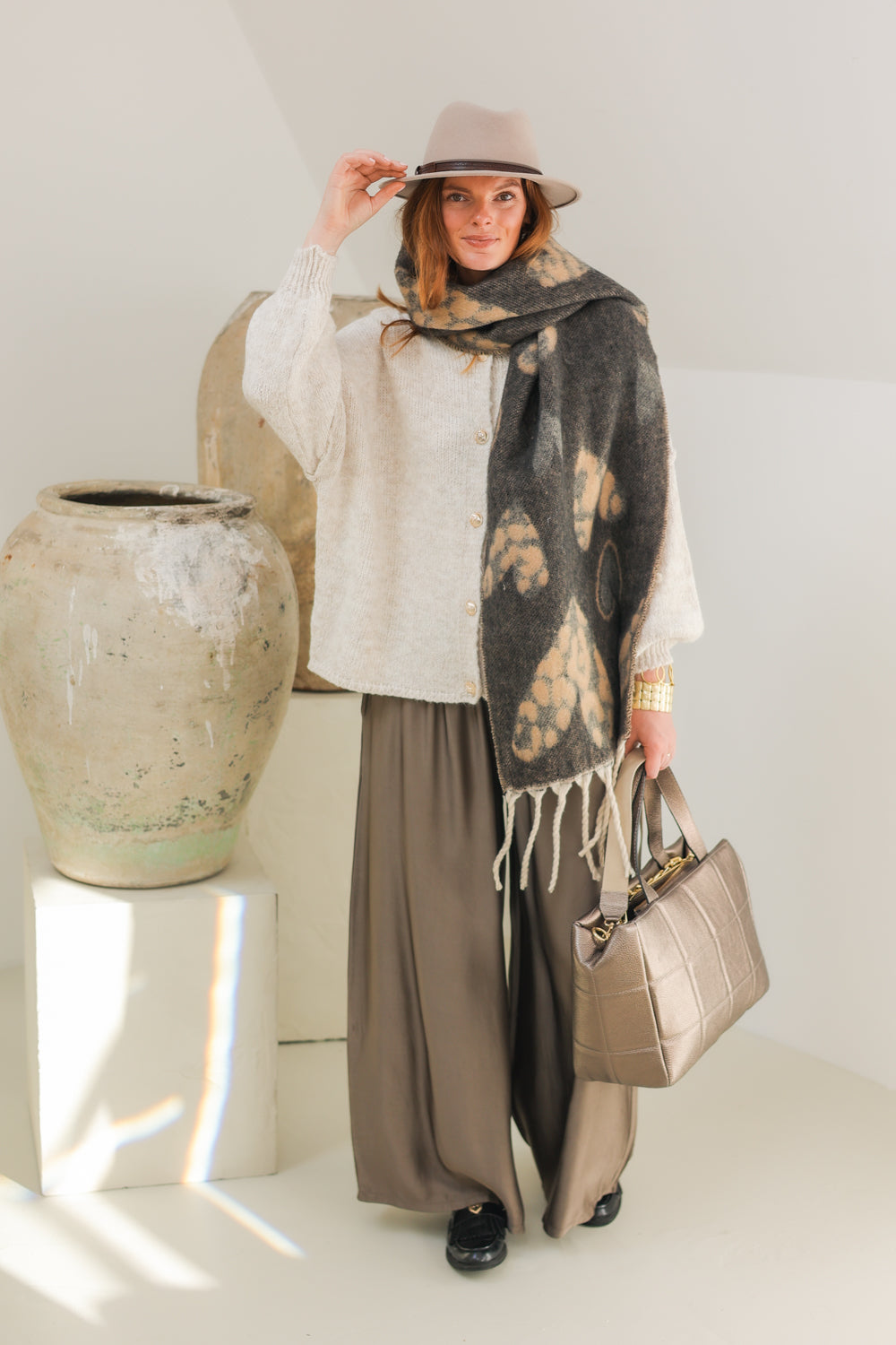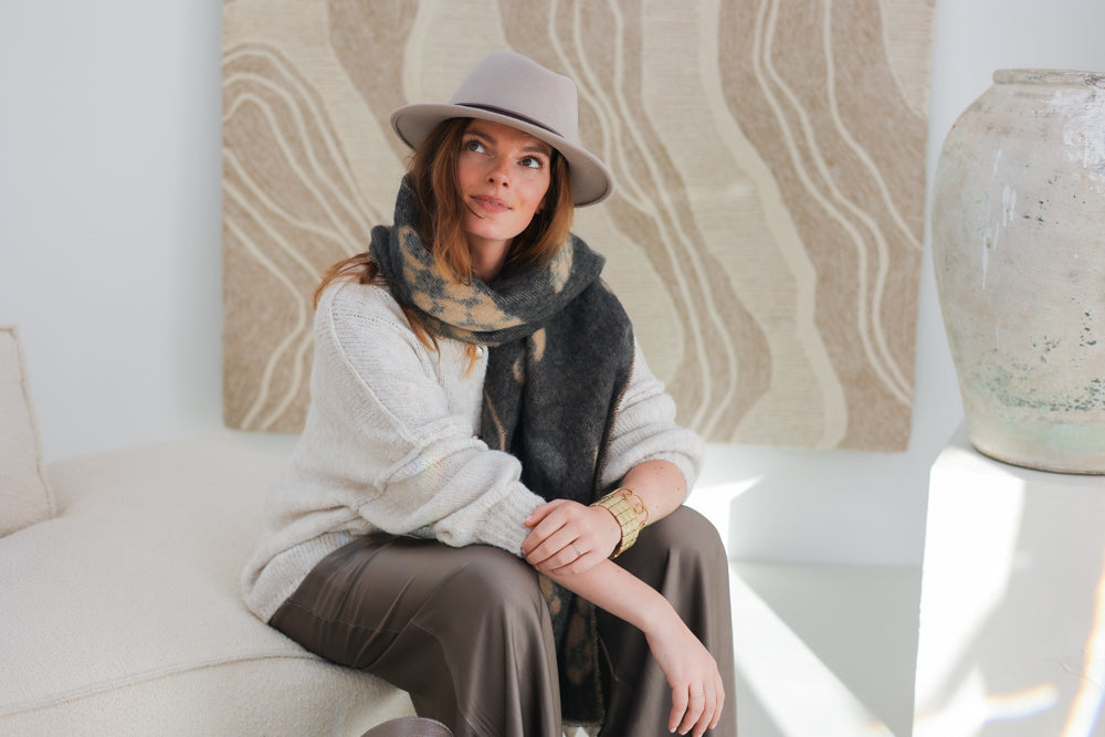 Grijze sjaal met grote harten motief