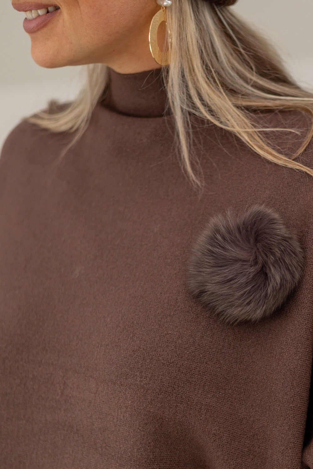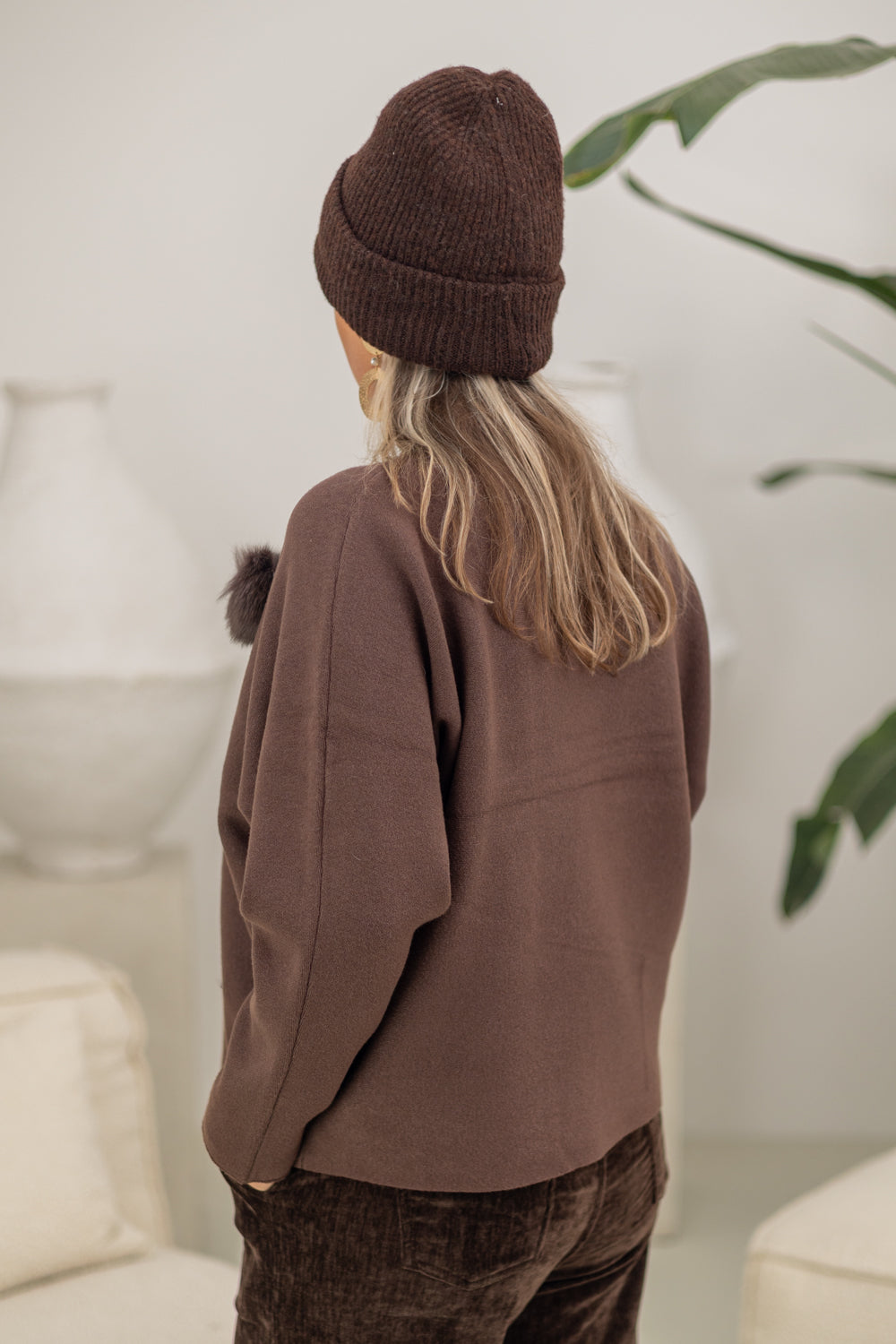 Elegante bruine basistop met vleermuismouw, 63% viscose en 37% nylon, one size maat 36 t/m 42 , verkrijgbaar in meerdere kleuren