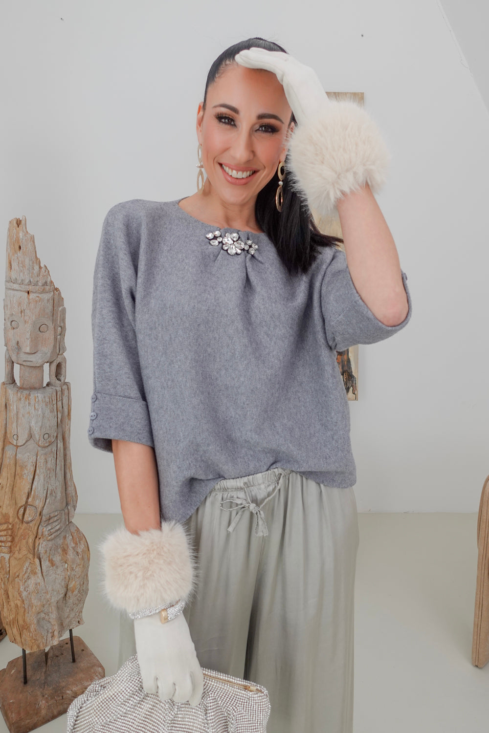 Ontdek de elegante grijze top Luriria, perfect voor elke gelegenheid dankzij zijn chique uitstraling. Gemaakt van een luxe mix van 48% viscose, 28% polyamide en 22% nylon, biedt deze top ademend comfort.