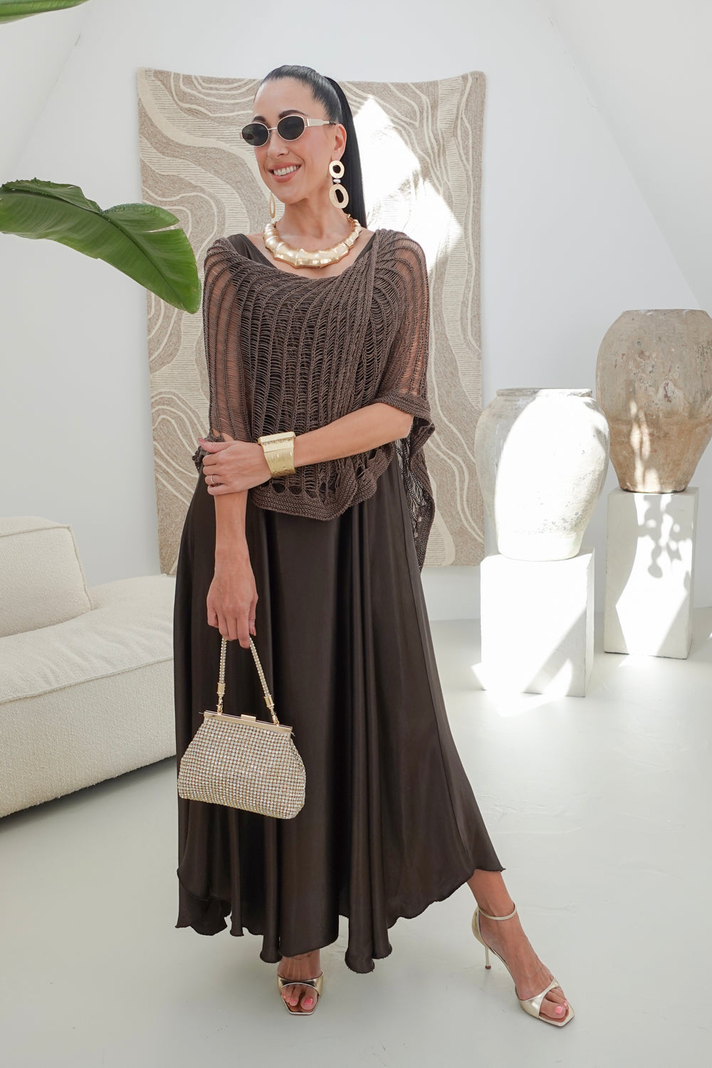 Deze mooie bruine gehaakte top is perfect voor elke gelegenheid, van casual uitjes tot feestelijke evenementen. Gemaakt van 100% acryl, biedt deze top een combinatie van stijl en comfort. De one size, perfect fit is geschikt voor maten S t/m XL en zorgt ervoor dat het kledingstuk mooi valt voor iedereen.