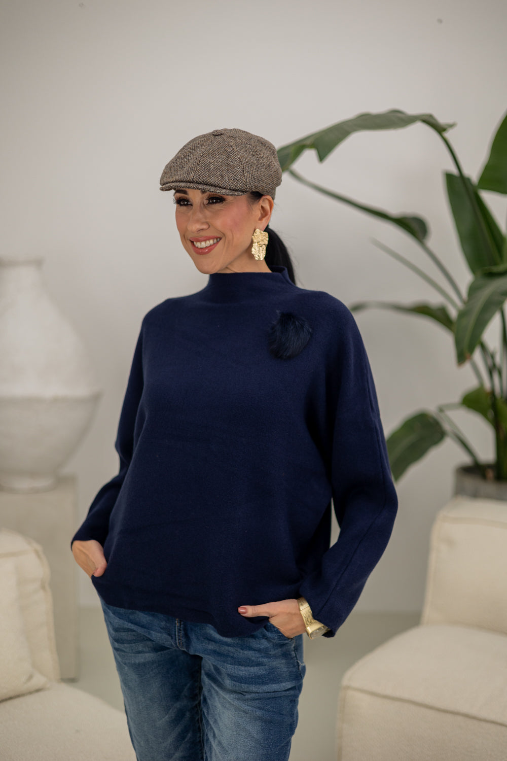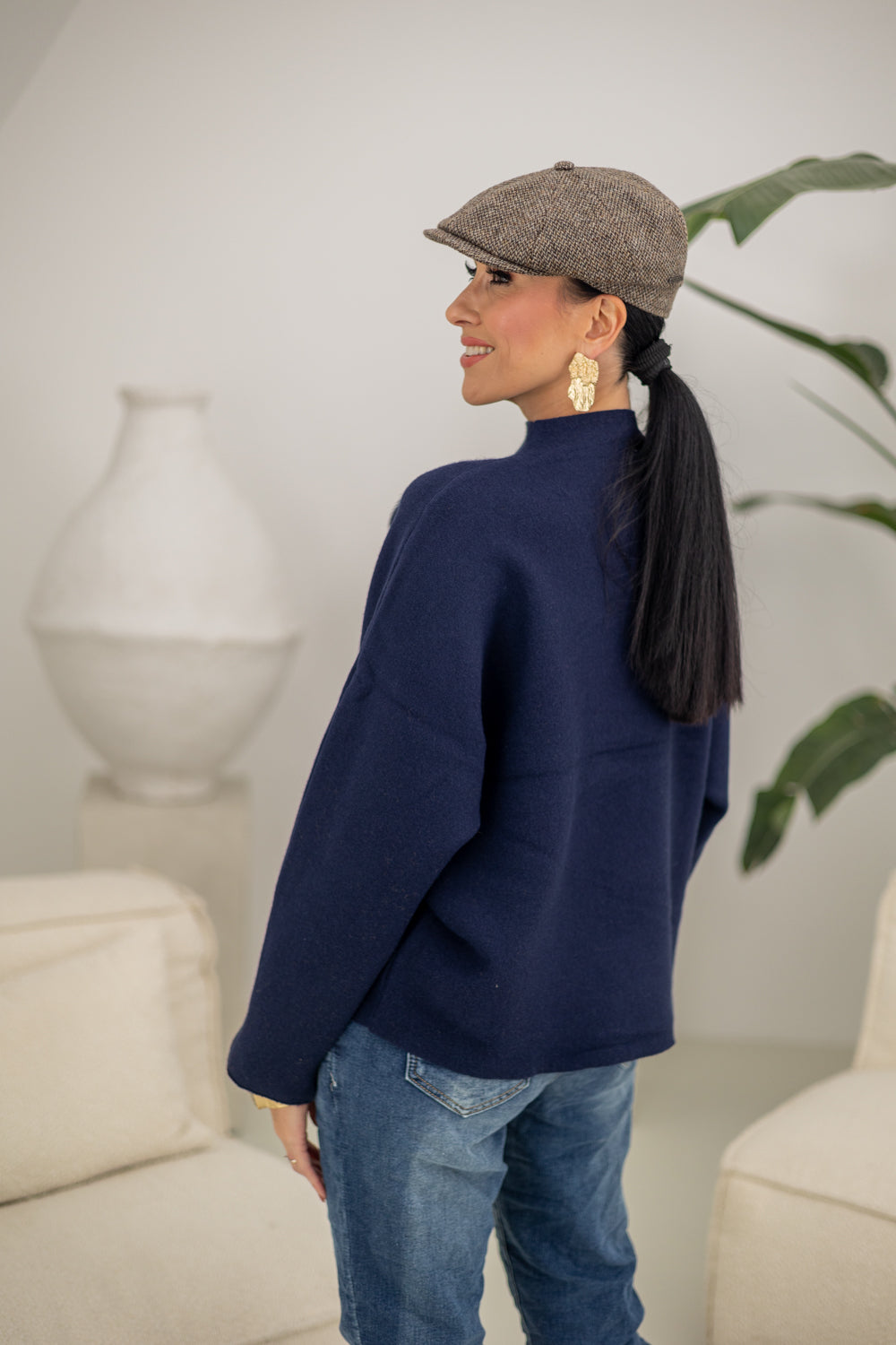 Deze elegante donkerblauwe basistop met vleermuismouw is de perfecte aanvulling op je garderobe. Gemaakt van een premium mix van 63% viscose en 37% nylon, biedt deze top een comfortabele pasvorm. Met de 'one size fits all' maat is deze top perfect voor maten 36 t/m 42.