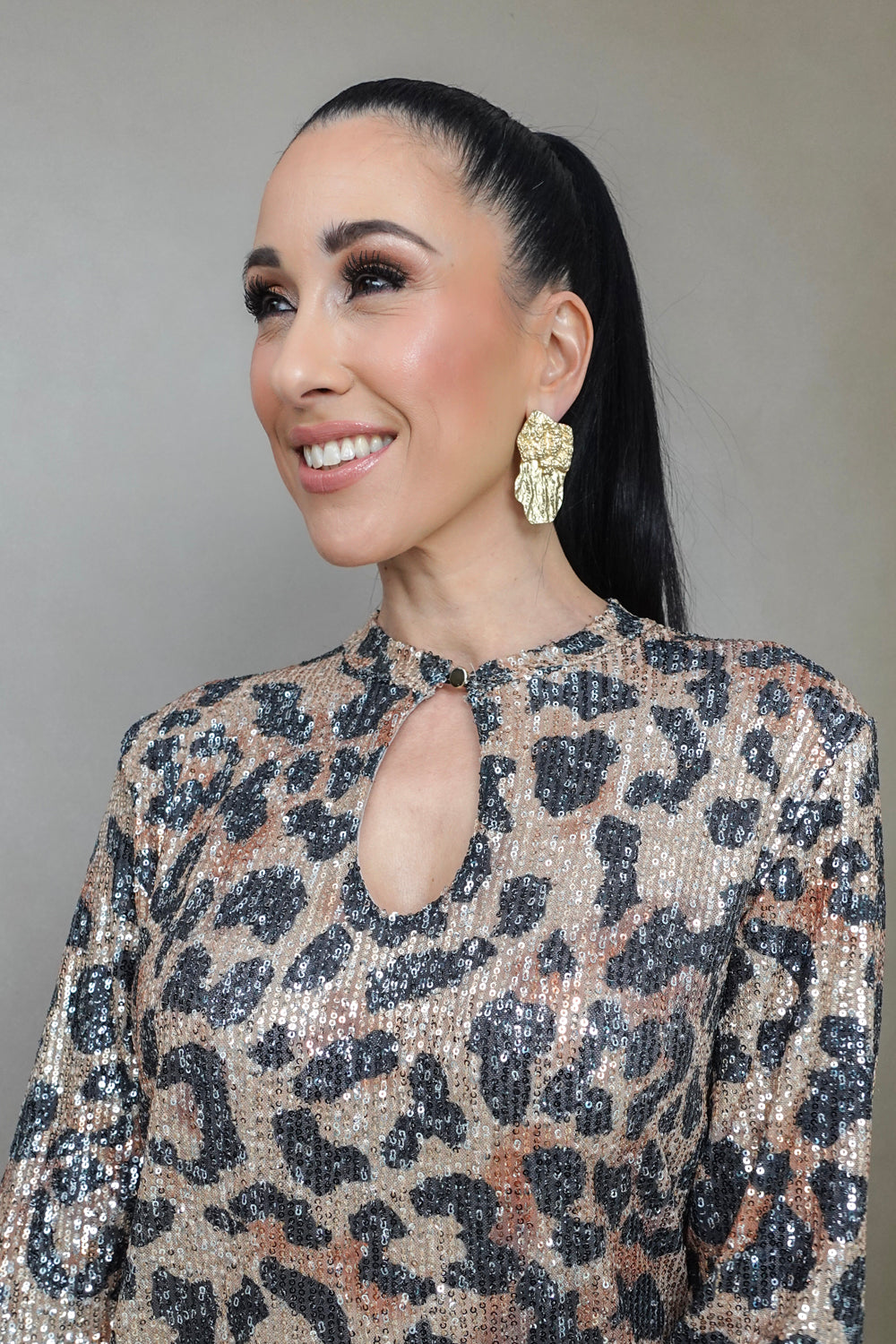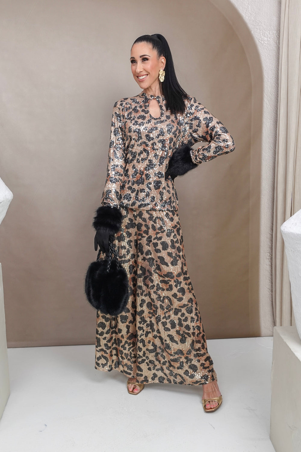 Pantertop met subtiele glitter, 70% polyester en 30% viscose, one size maat 36 t/m 42.