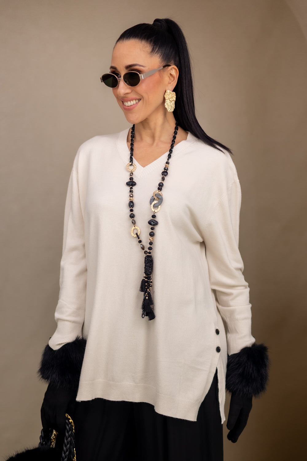 De relaxte pasvorm maakt het makkelijk om deze trui te combineren met zowel jeans als een elegante rok. Perfect voor de lente en herfst, is hij veelzijdig en stijlvol te dragen.