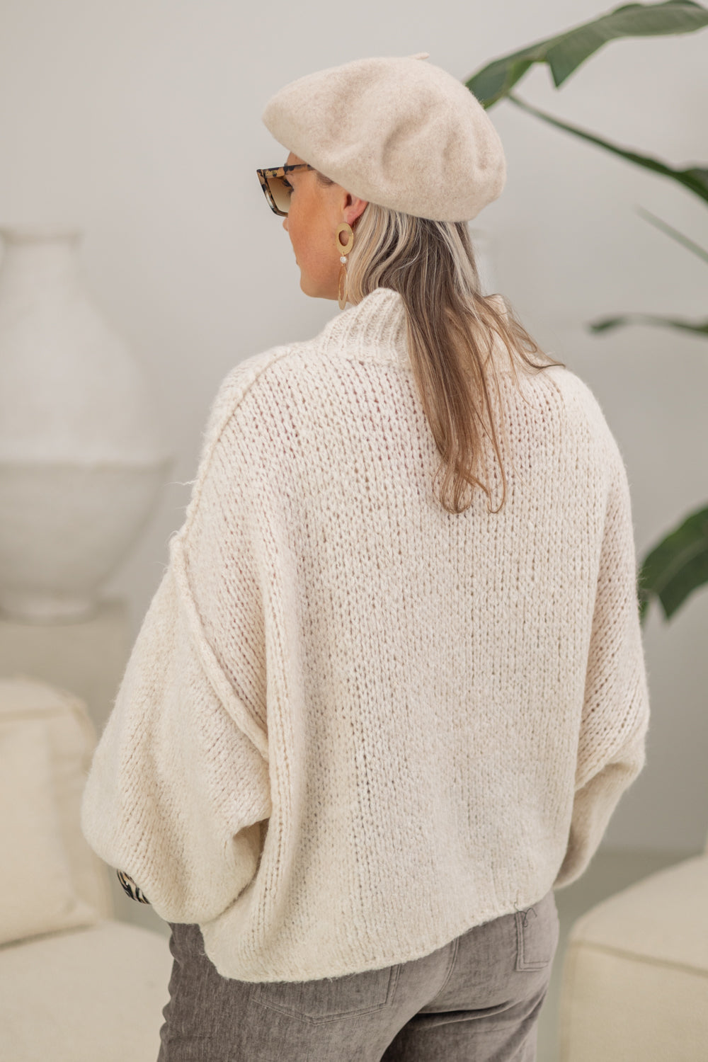 grofgebreide beige trui met turtleneck, 65% polyamide 17% polyster 9% lana en 9% viscose, one size maat 36 t/m 42