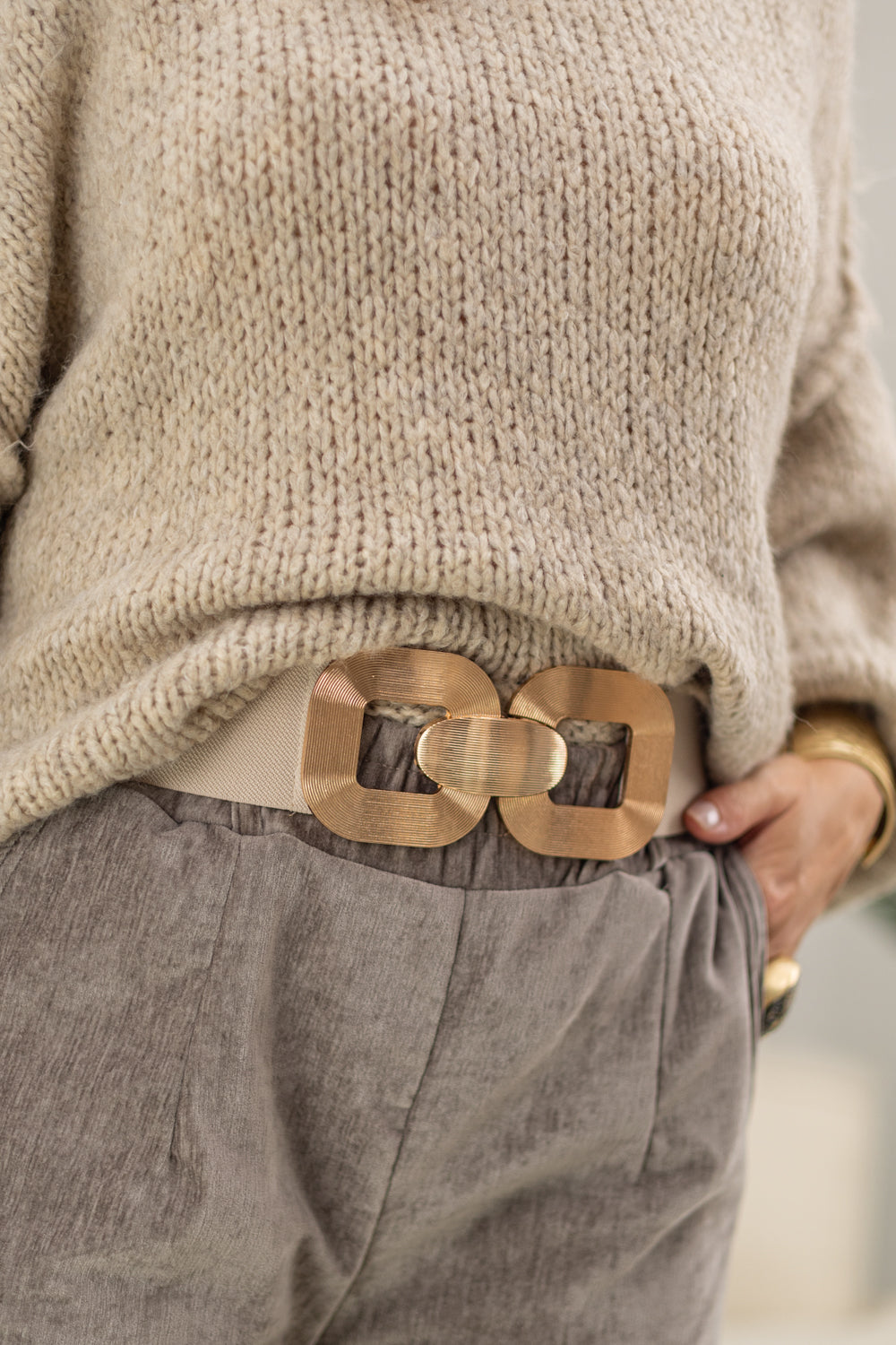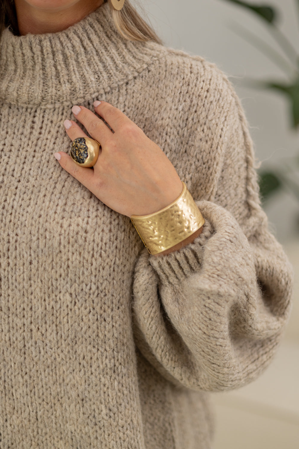 grofgebreide zandkleurige trui met turtleneck, 65% polyamide 17% polyster 9% lana en 9% viscose, one size maat 36 t/m 42