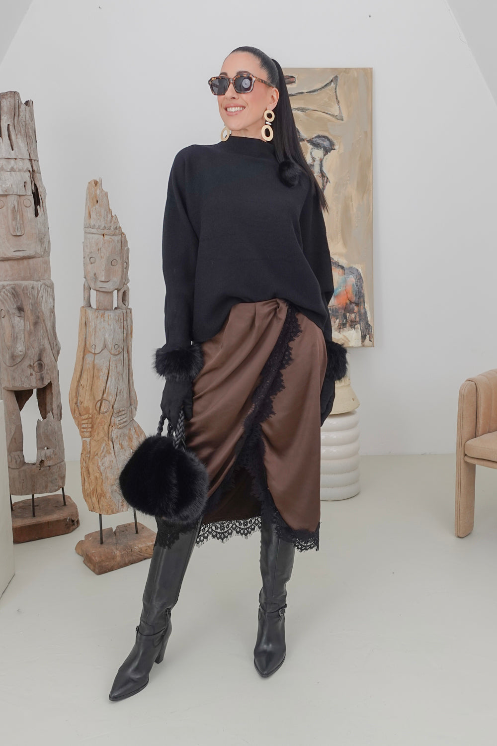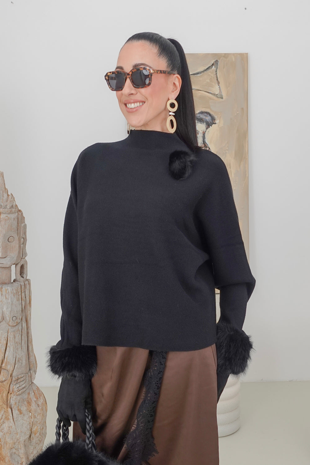 De eigentijdse snit flatteert en maakt het gemakkelijk om deze trui te combineren met alles, van chique broeken tot casual spijkerbroeken. De tijdloze zwarte kleur is een essentiële aanvulling voor elk seizoen.