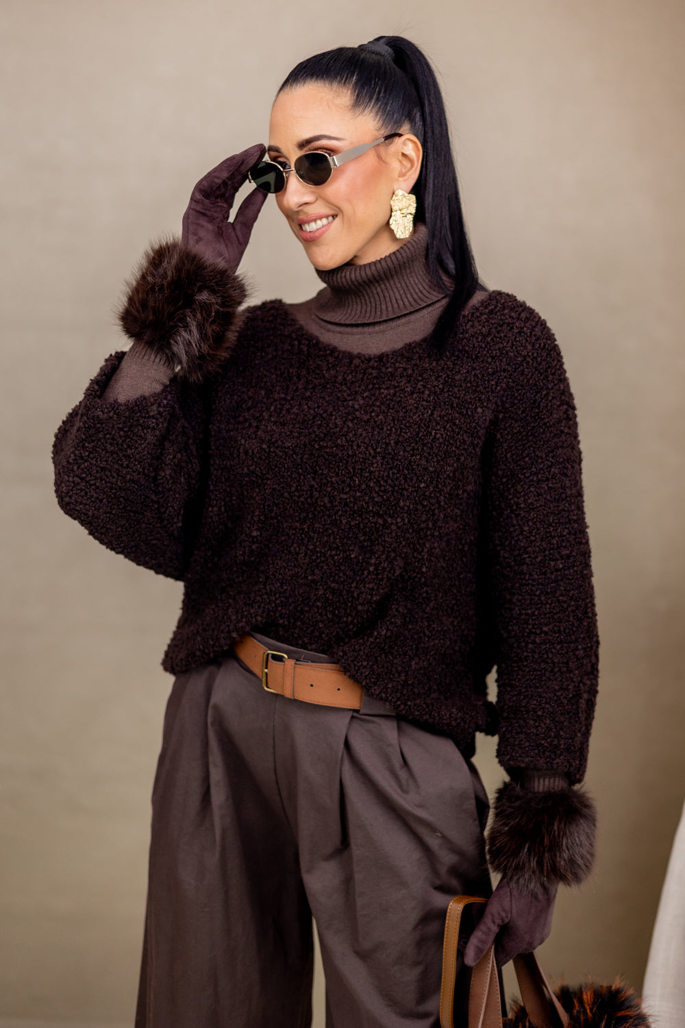 Verwen jezelf met deze grofgebreide bruine trui, ideaal voor koelere seizoenen. De trui is ontworpen om een perfecte pasvorm te bieden voor maten 36 t/m 42, waardoor hij zich elegant aanpast aan jouw figuur. Met een samenstelling van 52% polyacryl, 19% polyester, 8% viscose en 4% alpaca, geniet je van luxe comfort en warmte.