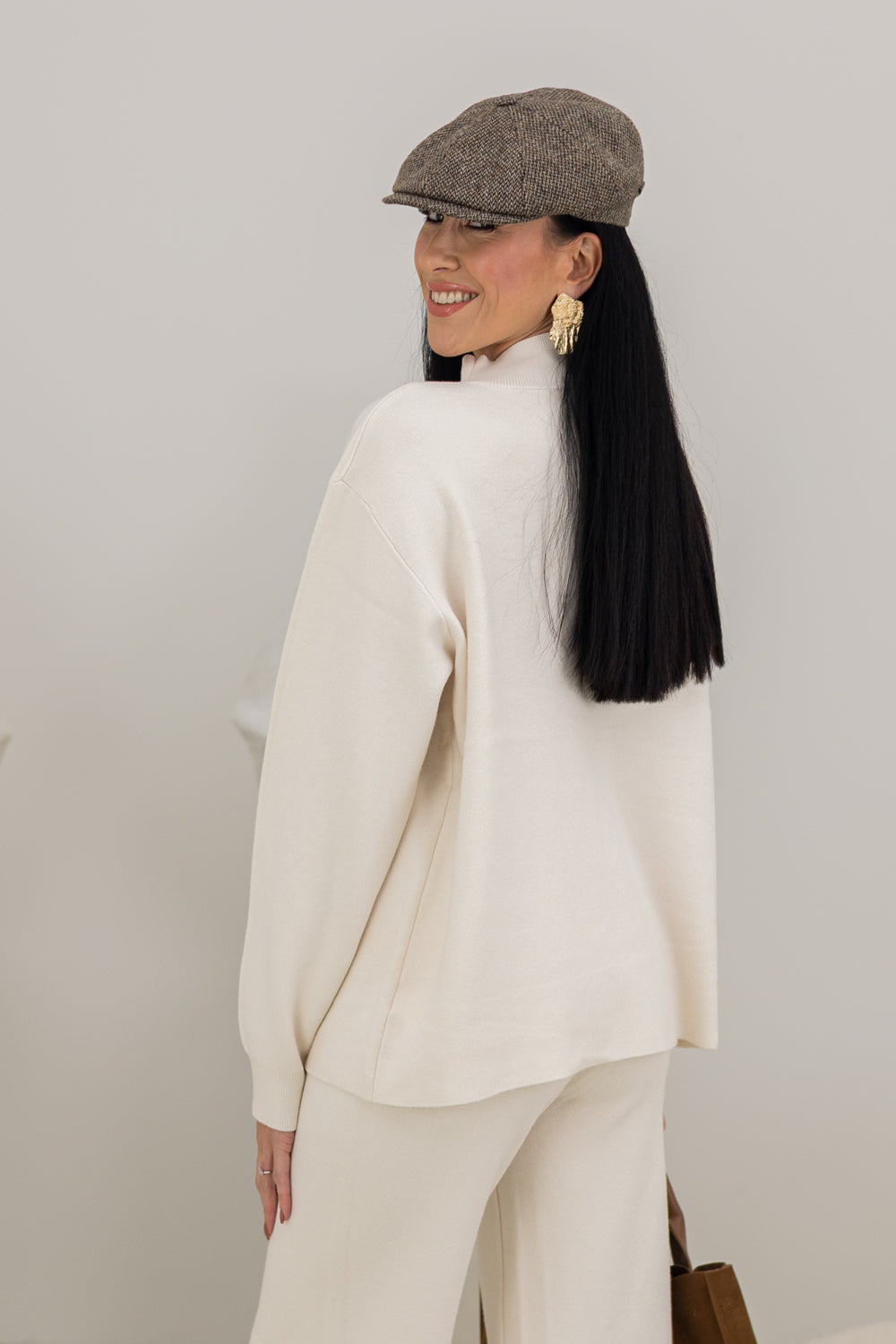 heerlijk comfy beige gebreide trui, 30% polyamide 30% viscose 20% modal en 20% elastan, one size maat 36 t/m 42, hoort bij broek annata