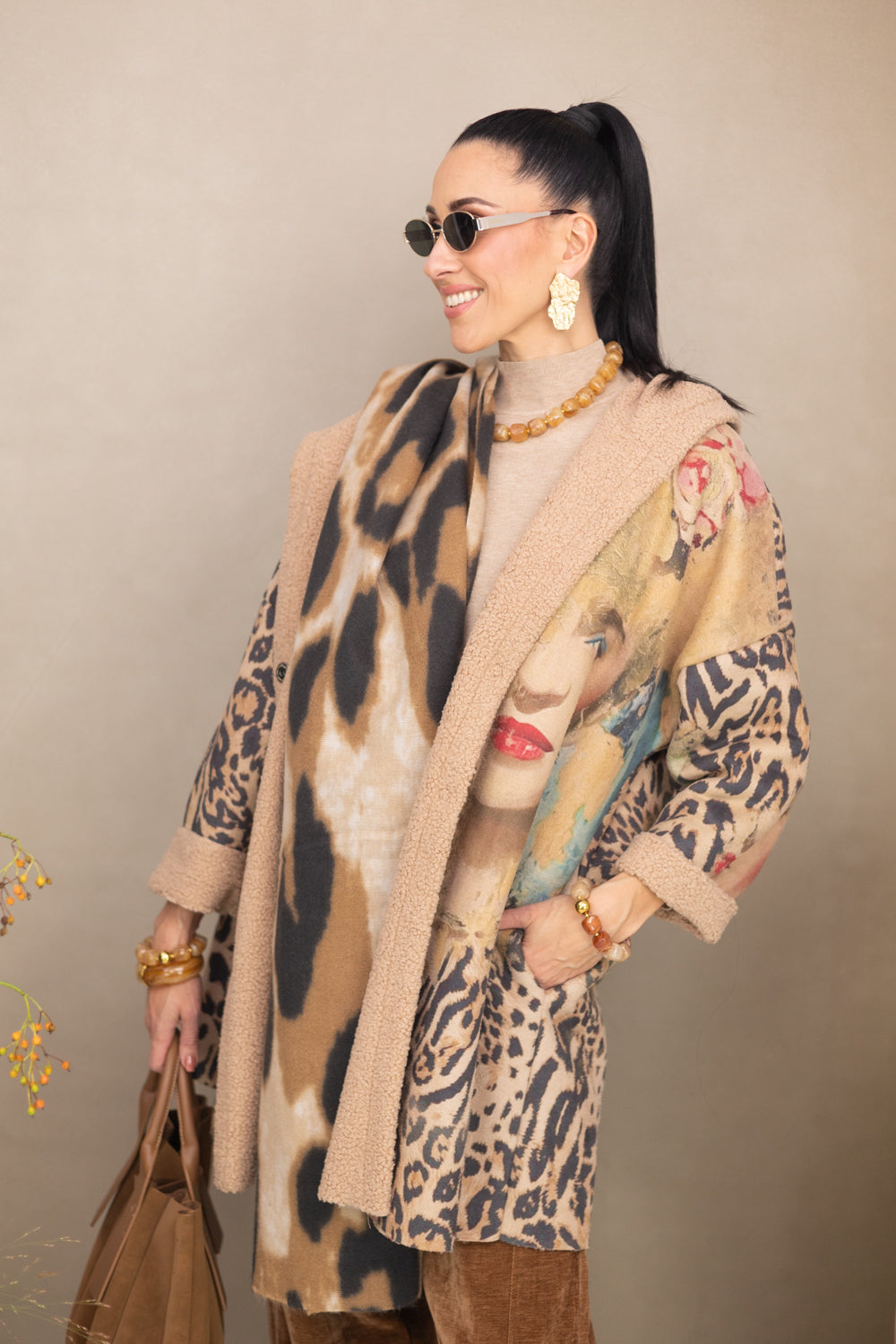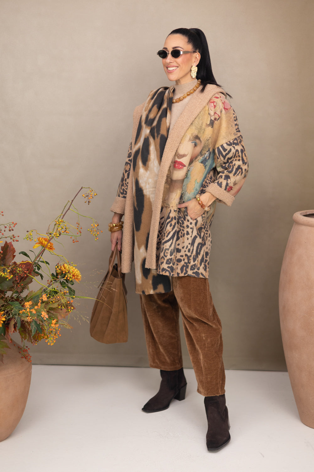 opvallende printvest met capuchon , 75% polyester en 25% nylon, one size maat 36 t/m 42