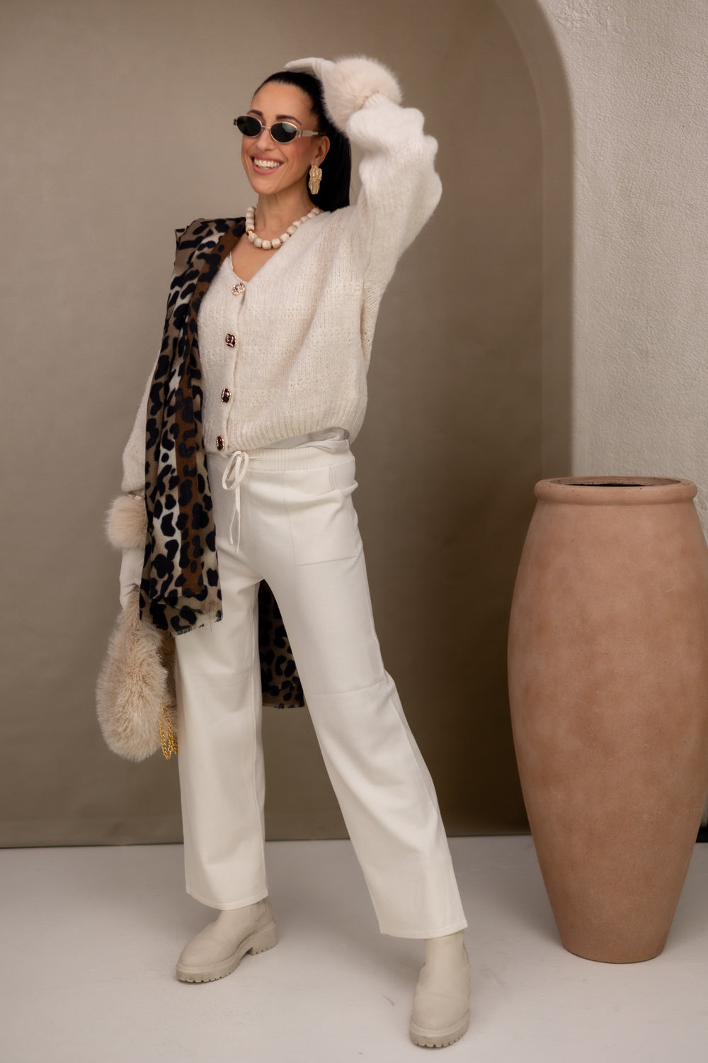 Gemaakt van een hoogwaardige mix van 52% polyacryl, 19% polyester, 8% viscose en 4% alpaca, voelt het heerlijk zacht aan en blijft het mooi na elke wasbeurt.
