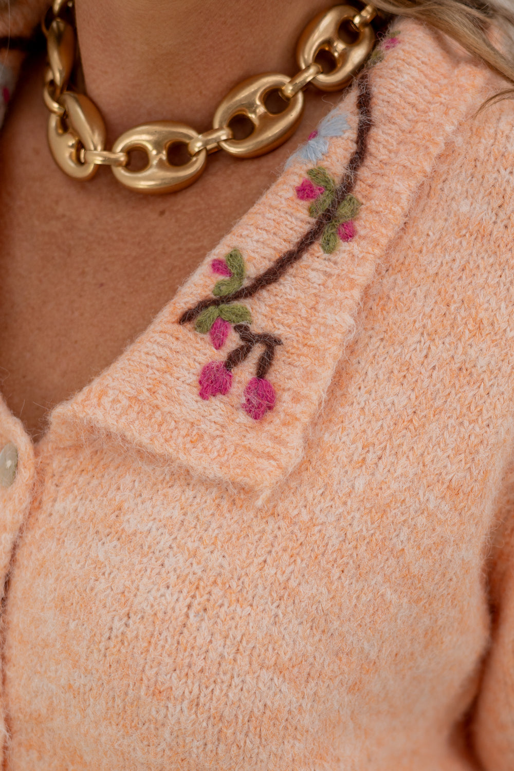 Voeg een sprankje kleur toe aan je garderobe met dit elegante oranje vestje, versierd met prachtige geborduurde bloemen. Gemaakt van een comfortabele mix van 48% polyamide, 40% viscose, 10% wol en 2% spandex, biedt het vestje een perfecte combinatie van stijl en functionaliteit. Met de 'one size, perfect fit' maatvoering is dit item geschikt voor maten 36 tot 42, zodat jij altijd stralend voor de dag komt.