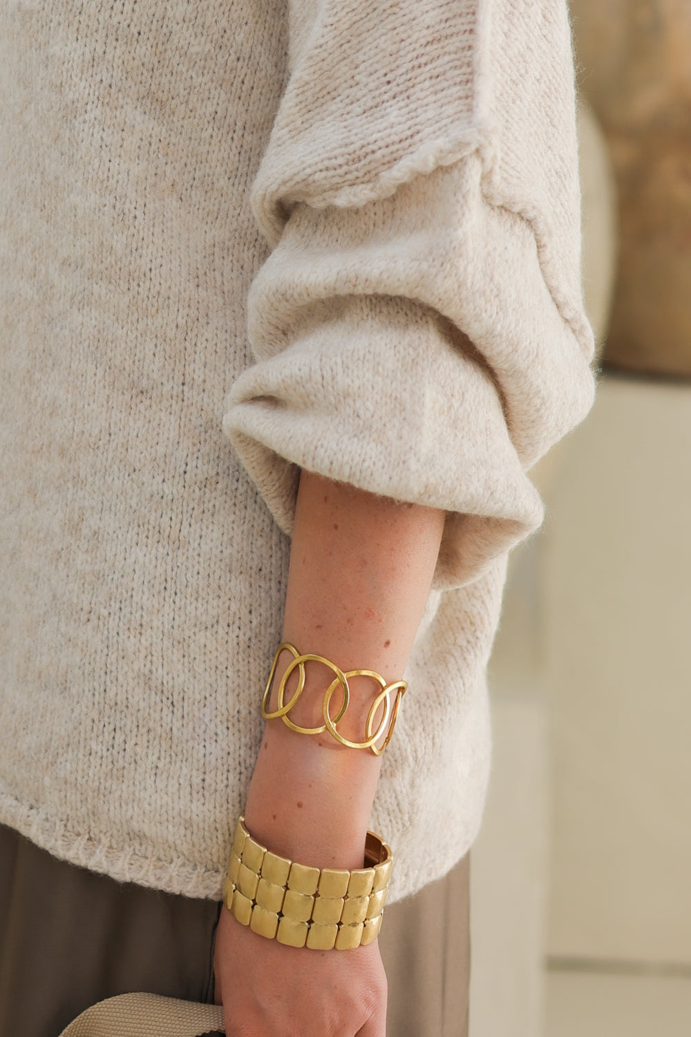 Dit stijlvolle beige vest met gouden knopen is een onmisbaar item voor elke modebewuste vrouw. Met een 'one size, perfect fit' voor maten S t/m XL, biedt het een comfortabele pasvorm die mooi staat bij diverse lichaamstypes. Gemaakt van een luxe mix van 52% acryl, 22% polyester, 18% lana en 8% viscose, voelt het heerlijk zacht aan.