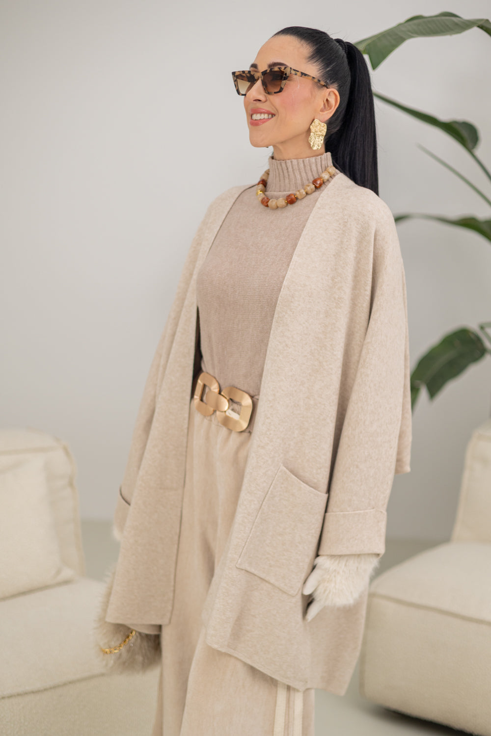 oversized elegant zandkleurig vest, 30% polyamide 30% viscose 20% modal en 20% elastan, one size maat 36 t/m 44
