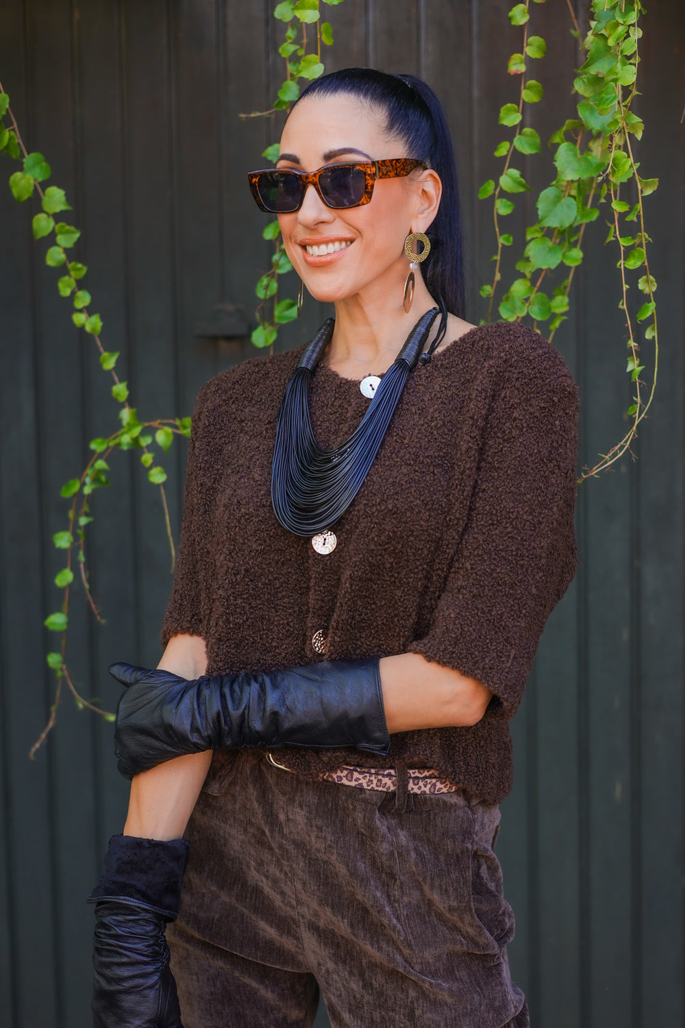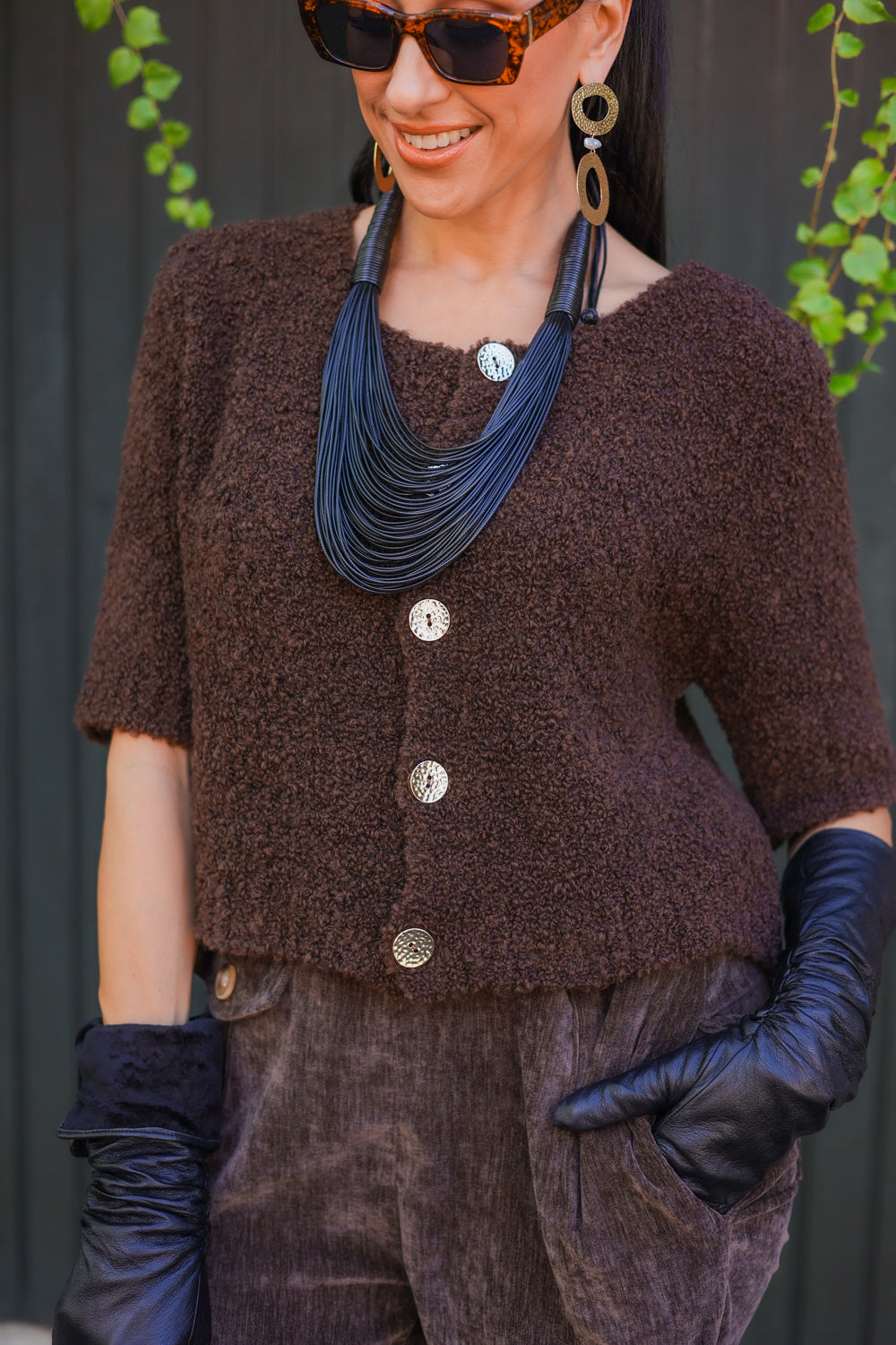 Dit elegante bruin fijngebreide vestje is perfect voor elke gelegenheid. De mooie gouden knopen voegen een vleugje luxe toe, terwijl het hoogwaardige materiaal van 65% acryl, 17% polyamide, 9% viscose en 9% lana zorgt voor een comfortabele pasvorm.