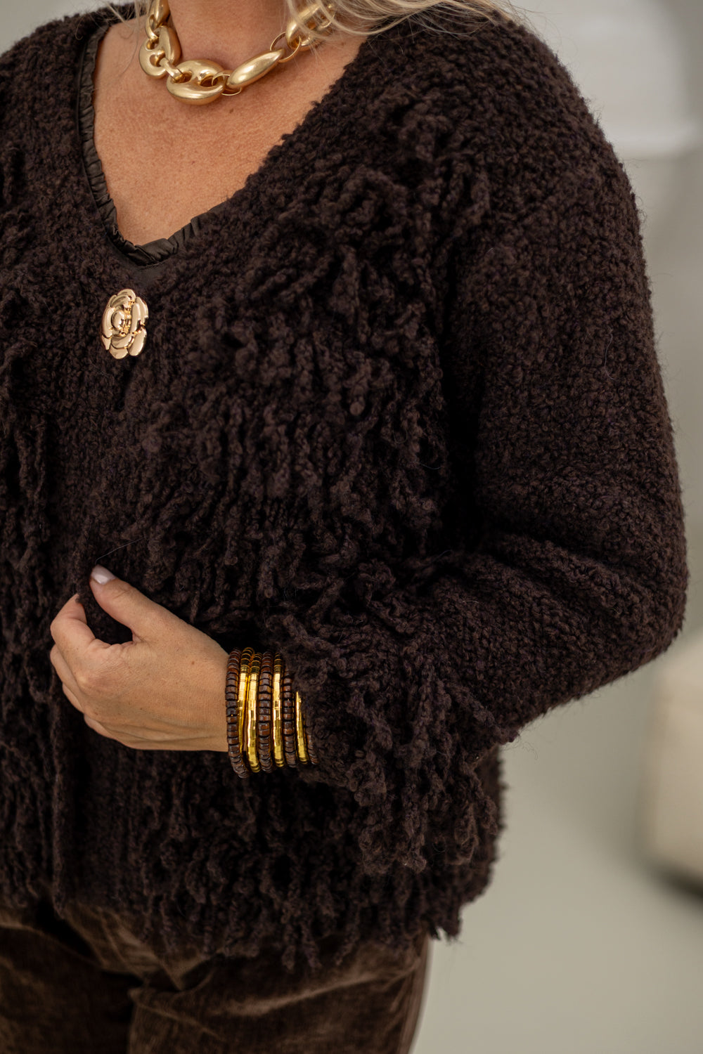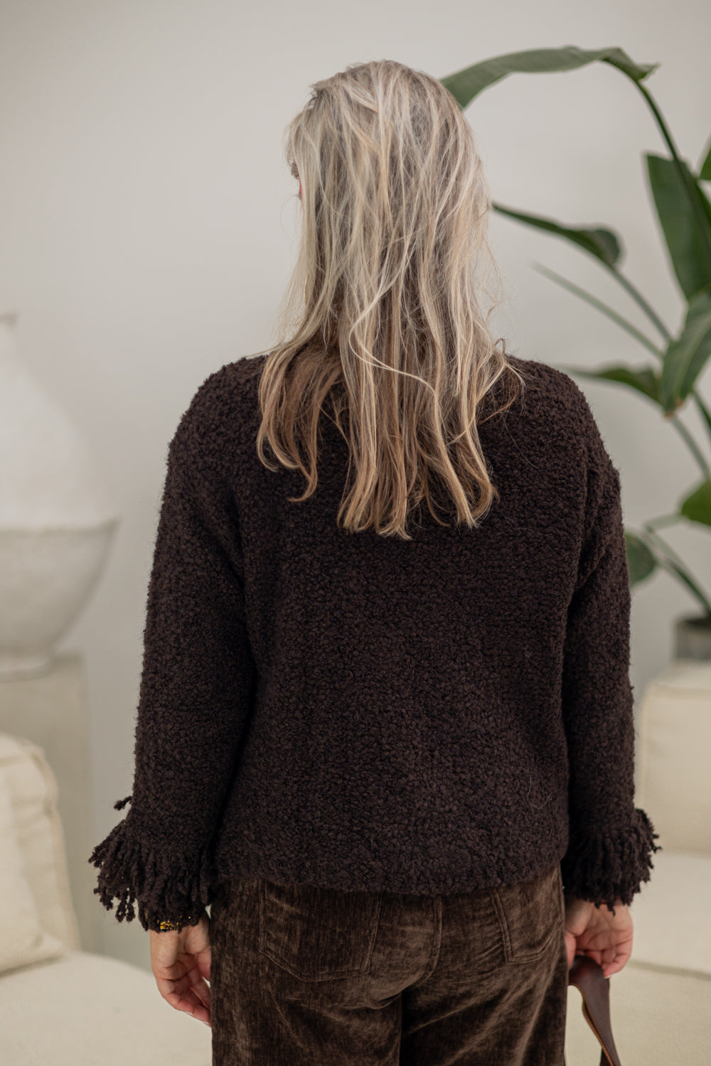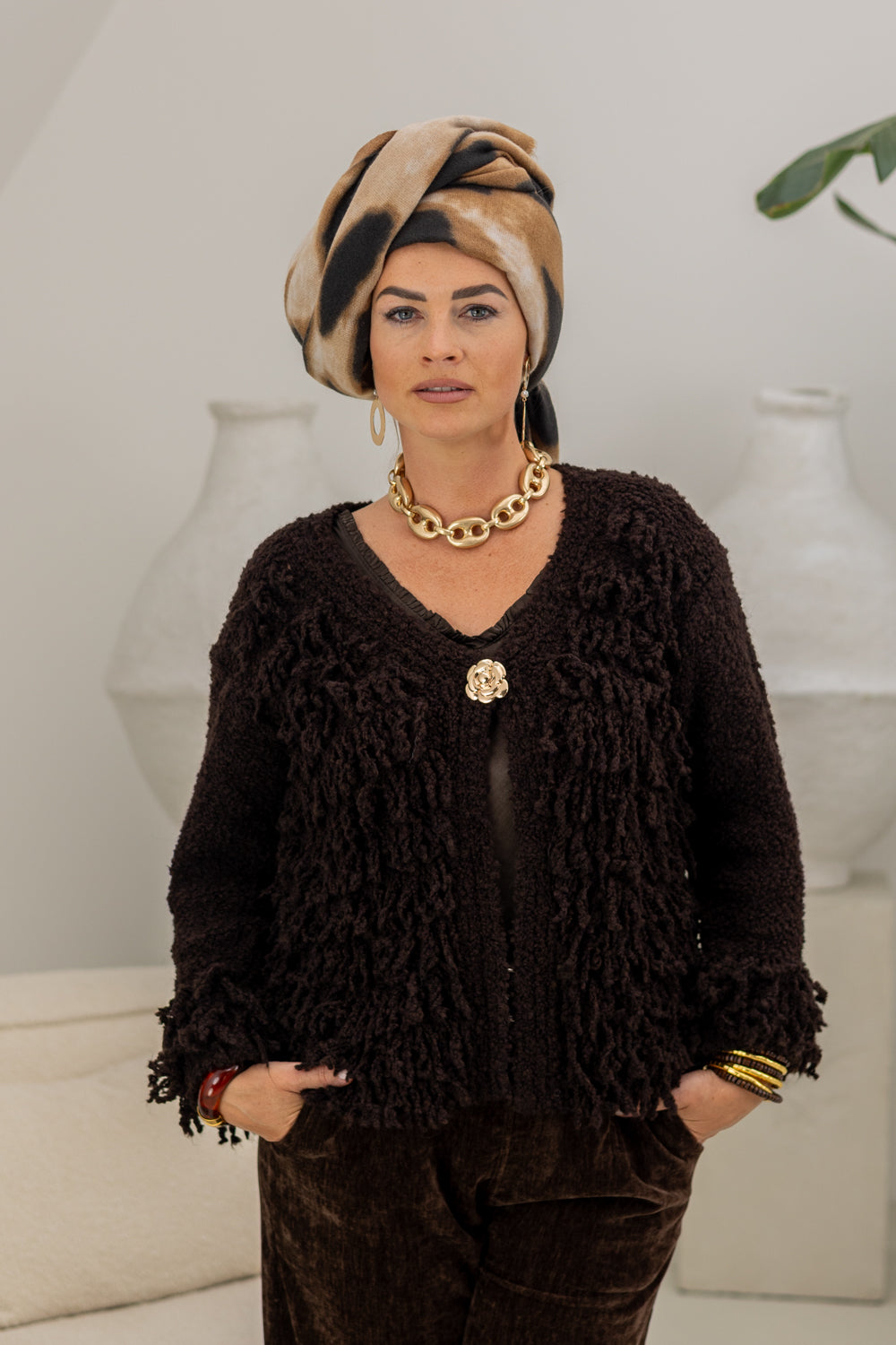Voeg een vleugje flair toe aan jouw herfstgarderobe met dit prachtige bruine vestje! Met charmante franjes en een luxe gouden sluiting is het een perfecte keuze voor diverse gelegenheden. Dit vest is ontworpen als 'one size fits' en past prachtig voor maten S t/m XL, waardoor het voor iedereen geschikt is.